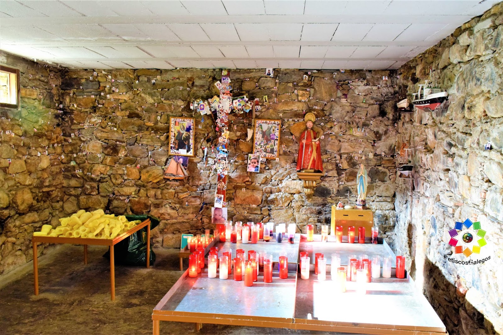 Después de entrar en el Santuario y rogar la bendición del santo, si llevamos alguna ofrenda nos dirigiremos a la cueva que se encuentra detrás . Allí nos encontramos gran cantidad de ofrendas de todo tipo que la gente va dejando por su devoción al santo con la esperanza de que les de su favor.
