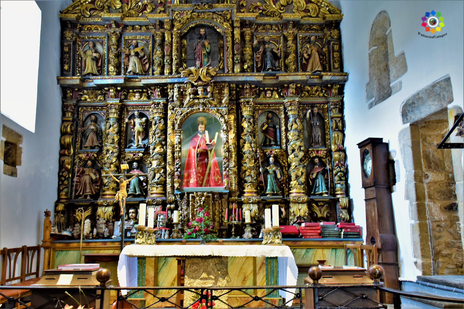Se trata de un templo gótico de tipología marinera en el que se conserva como elemento más antiguo el arco triunfal del tipo apuntado. Las partes más antiguas corresponden a la época de los Andrade: el ábside, que era inicialmente abovedado, y la puerta lateral compuesta por un arco conopial de tipo isabelino, propio del gótico tardio, y que debió servir de puerta principal del templo desde el s.XV al s.XVIII.