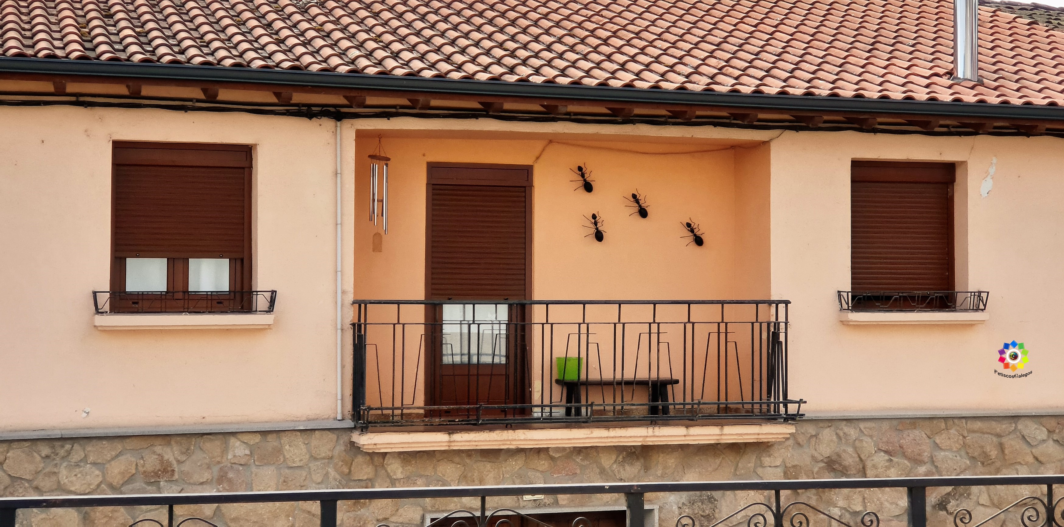 El de Laza es un «entroido» único y quizás un poco «salvaje», valga de ejemplo la famosa «Baixada da Morena». La «Morena» es una vaca que baja al pueblo al atardecer y su comitiva entra en la plaza con unas largas ramas de toxo (Tojo) con las que golpean a los espectadores… aunque esto no es lo más fuerte, esperad que os cuento… unos personajes disfrazados de hormigas gigantes y de científicos de laboratorio vienen en la comitiva lanzando sobre la gente tierra fresca y hormigas vivas, pero no os vayais a pensar que son hormigas cualquiera, no, son hormigas previamente seleccionadas, las top de las hormigas … y rociadas con vinagre para que piquen más a gusto, vamos que están rabiosas. Nosotros no hemos tenido el «gusto» de asistir al evento asi que os comparto las únicas hormigas que hemos visto en uno de los balcones del pueblo.