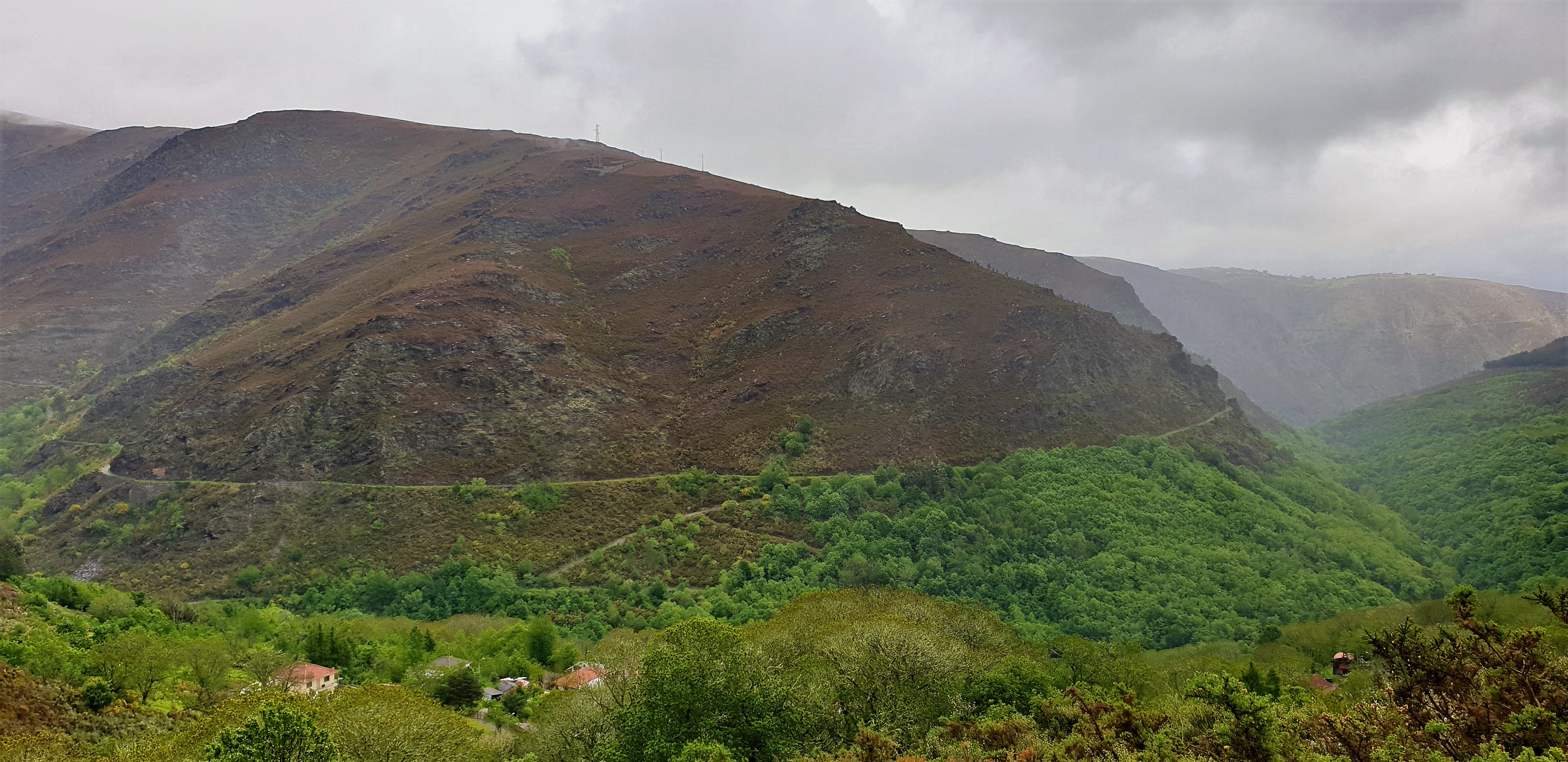 Pero la verdad es que lo que nos trae a Correchouso no son sus soutos de castaños , es el hecho que desde aquí podemos acceder a la PISTA DEL MARROQUI , aunque en esta ocasión nos llevaremos una sorpresa y es que el acceso desde Correchouso está cortado por un derrumbamiento y no se puede pasar, hay una pista que baja a la salida de Correchouso y quizás por ahí si vas caminando puedes llegar pero en coche a no ser un todoterreno o moto no se puede, asi que aprovechamos para disfrutar de las vistas desde la salida del pueblo y no nos queda más remedio que dirigirno a Laza para comenzar la ruta desde ahí.