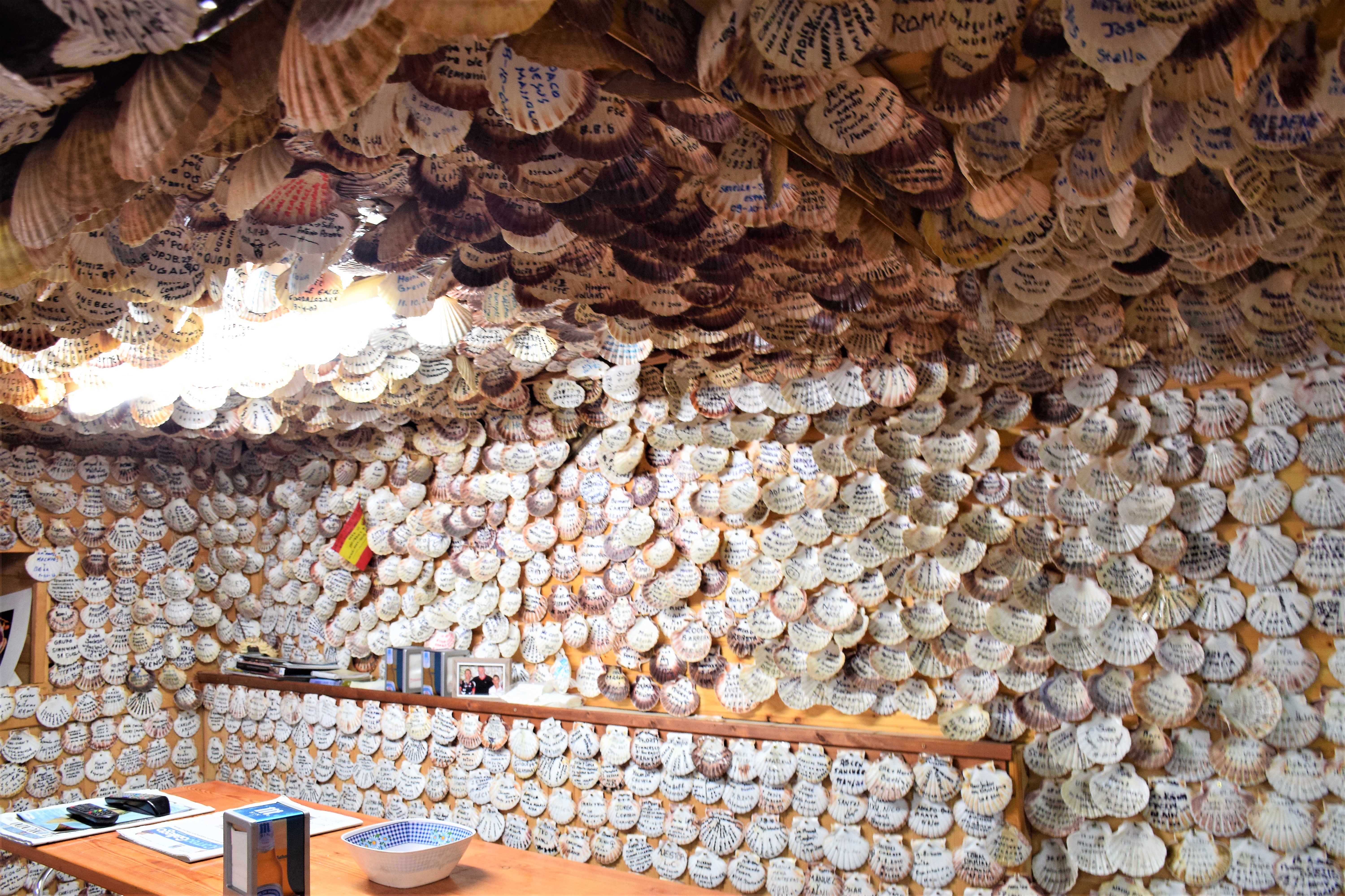 Lo más llamativo de este bar es su interior, recubierto de miles de conchas de vieiras que los que allí llegan dejan como recuerdo con su nombre, firma o una frase, después de que el propietario Luis Sandes se las entregue para luego buscarles un hueco y colocarlas en el mismo lugar que las encontrarán si regresan años después a verlas. Por aquí han pasado personas de todo tipo y cuenta el propio Luis que hasta Amancio Ortega ha estado tres veces.