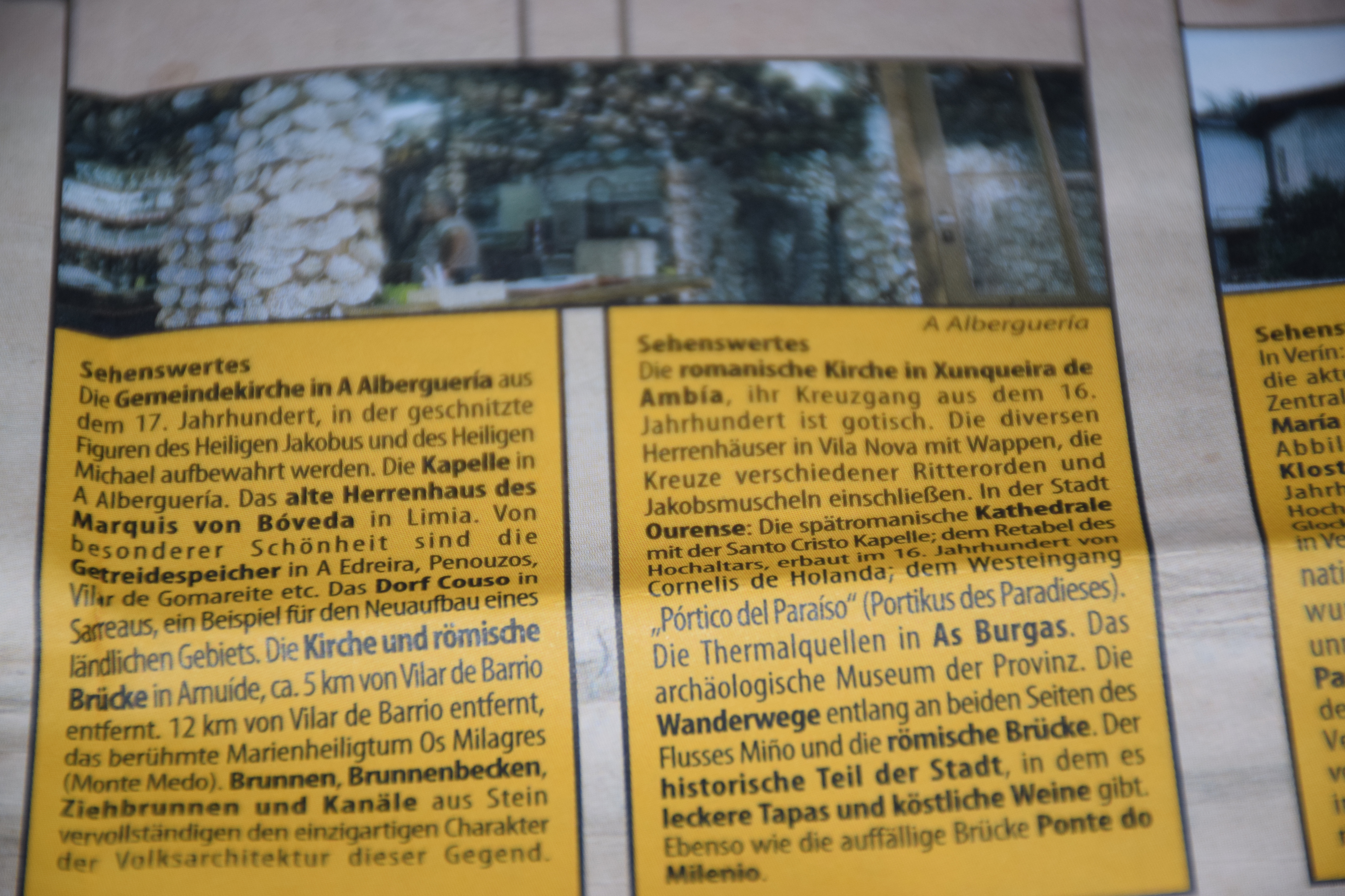 El Rincón del Peregrino es un lugar especial, se encuentra en la calle principal de Albergueria y es conocido y recordado por todos los peregrinos, siempre abierto es un alivio para los que llegan después de la subida de más de 11km desde Laza. Allí pueden tomar algo y descansar.