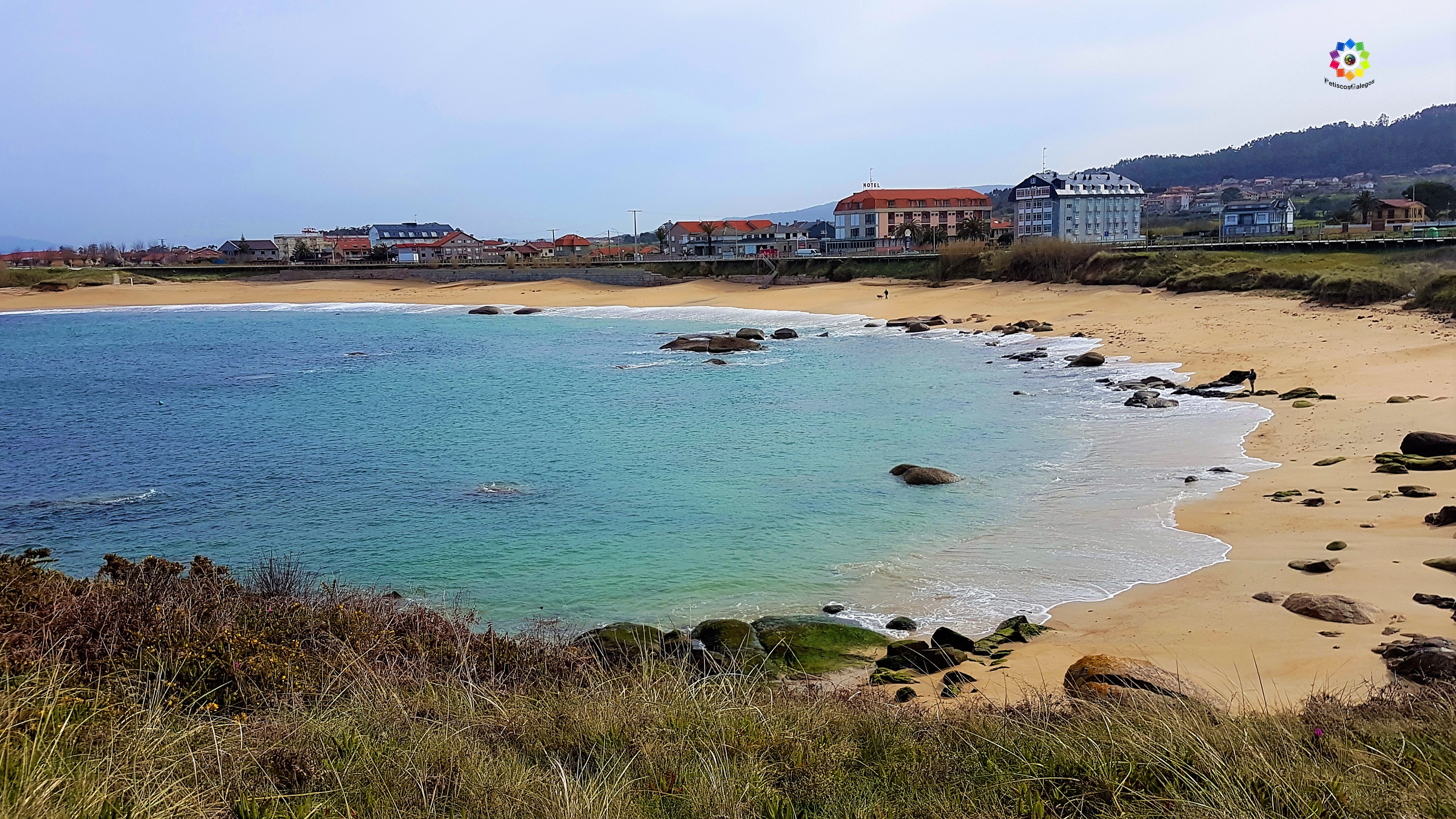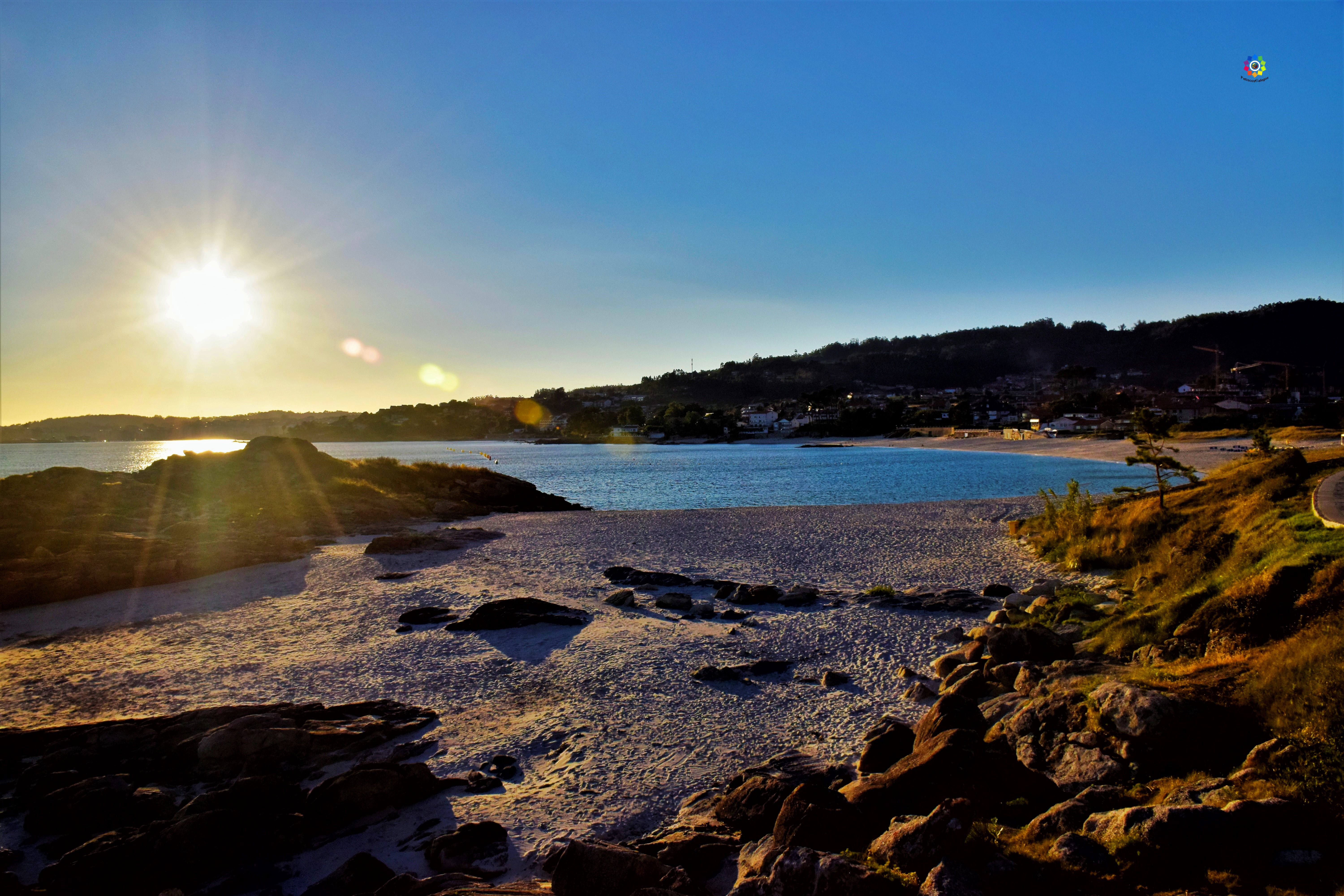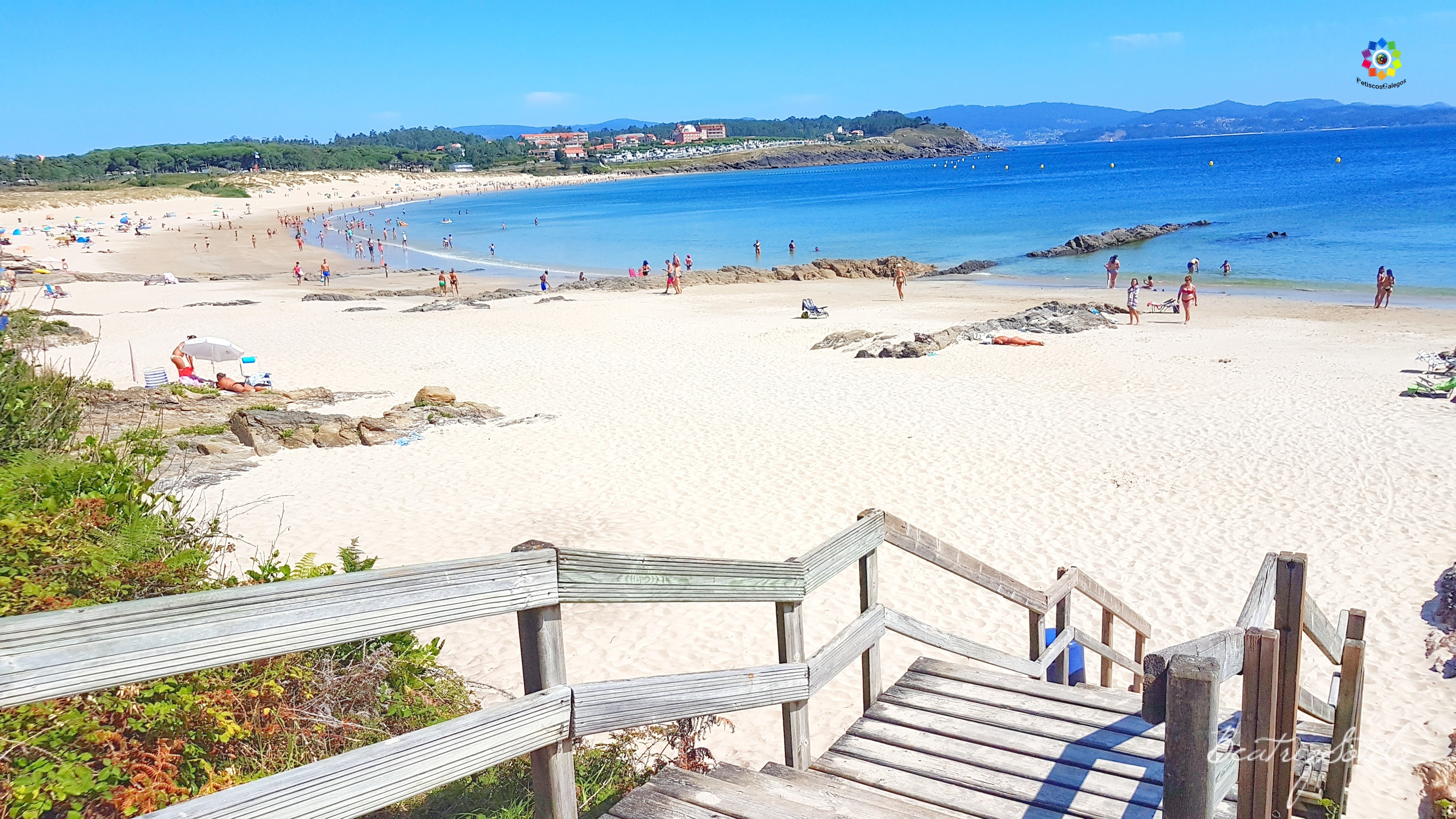 Con forma de media concha, arena blanca y aguas cristalinas, esta es otra de las preciosas playas que nos encontramos en la costa de Sanxenxo.
