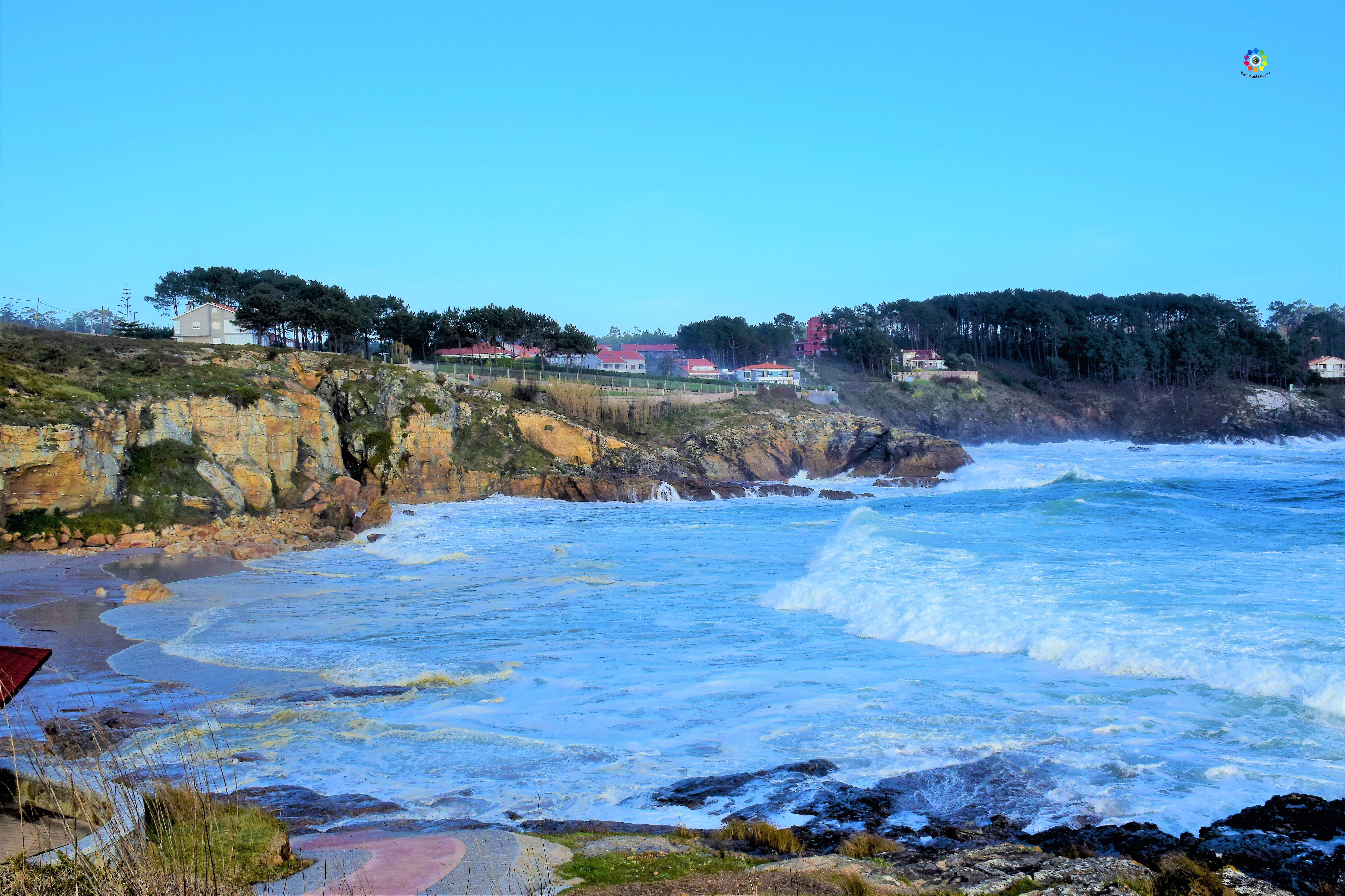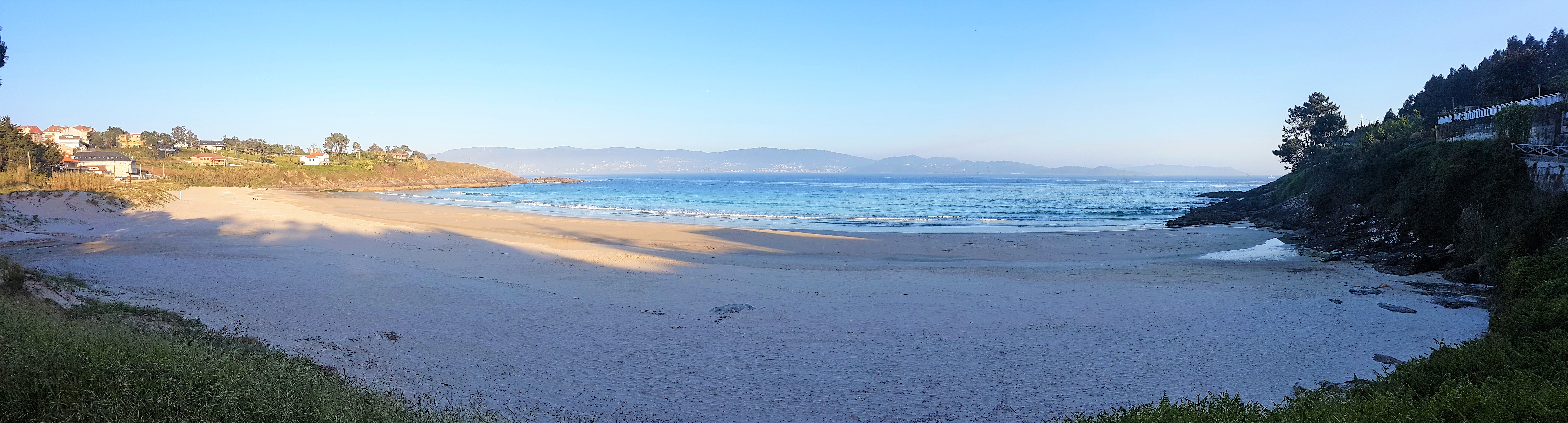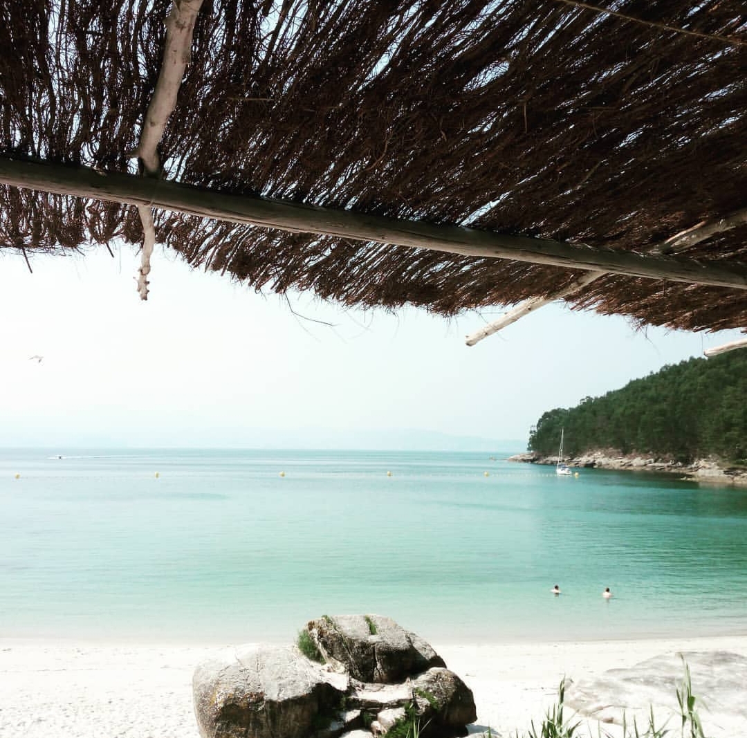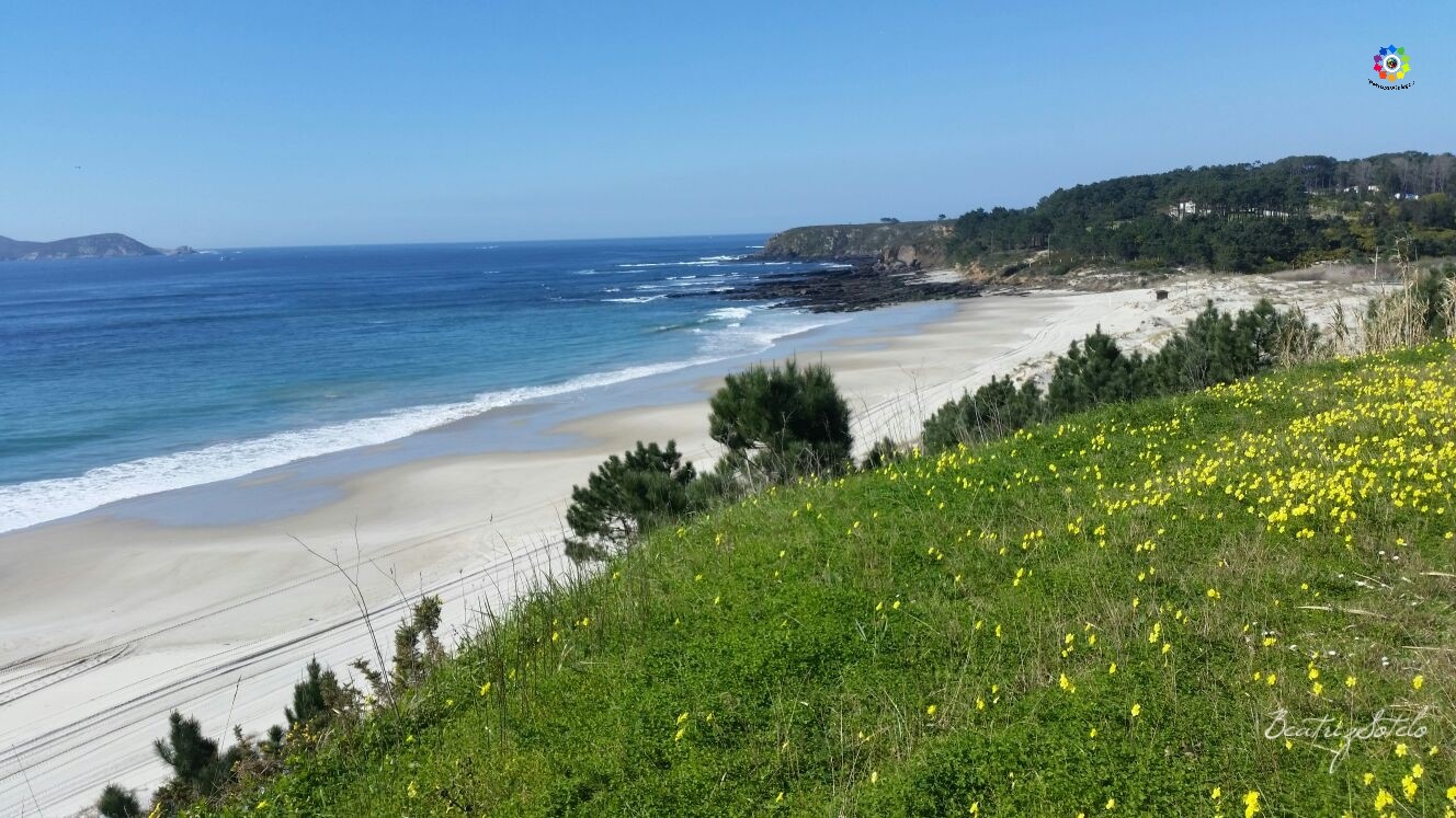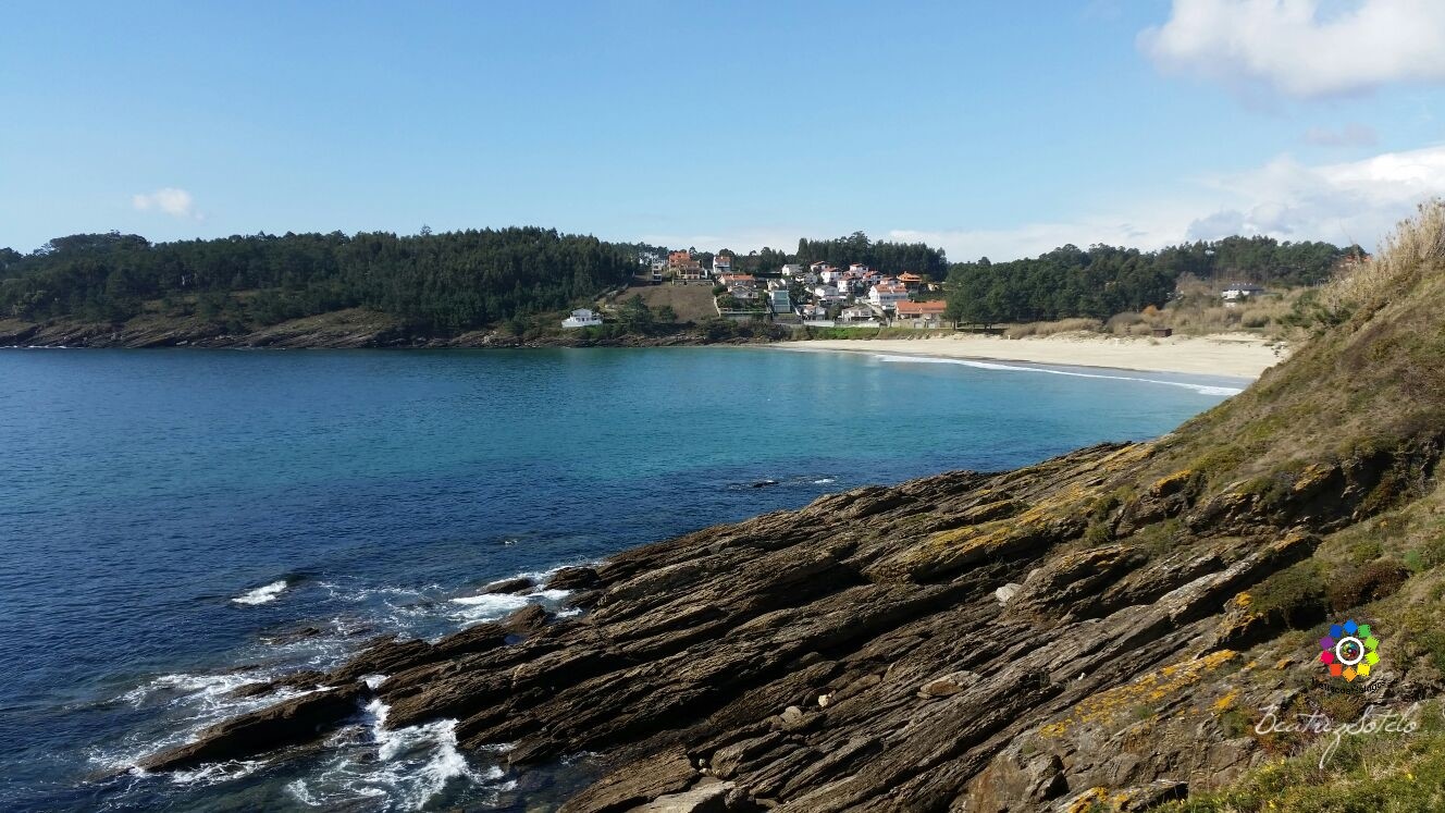 Situada entre Punta Faxilda (a su izquierda) y separada de la Playa de Pragueira por un acantilado ( a su derecha), esta es una preciosa playa de areena blanca con unas estupendas vistas a la Isla de Ons.