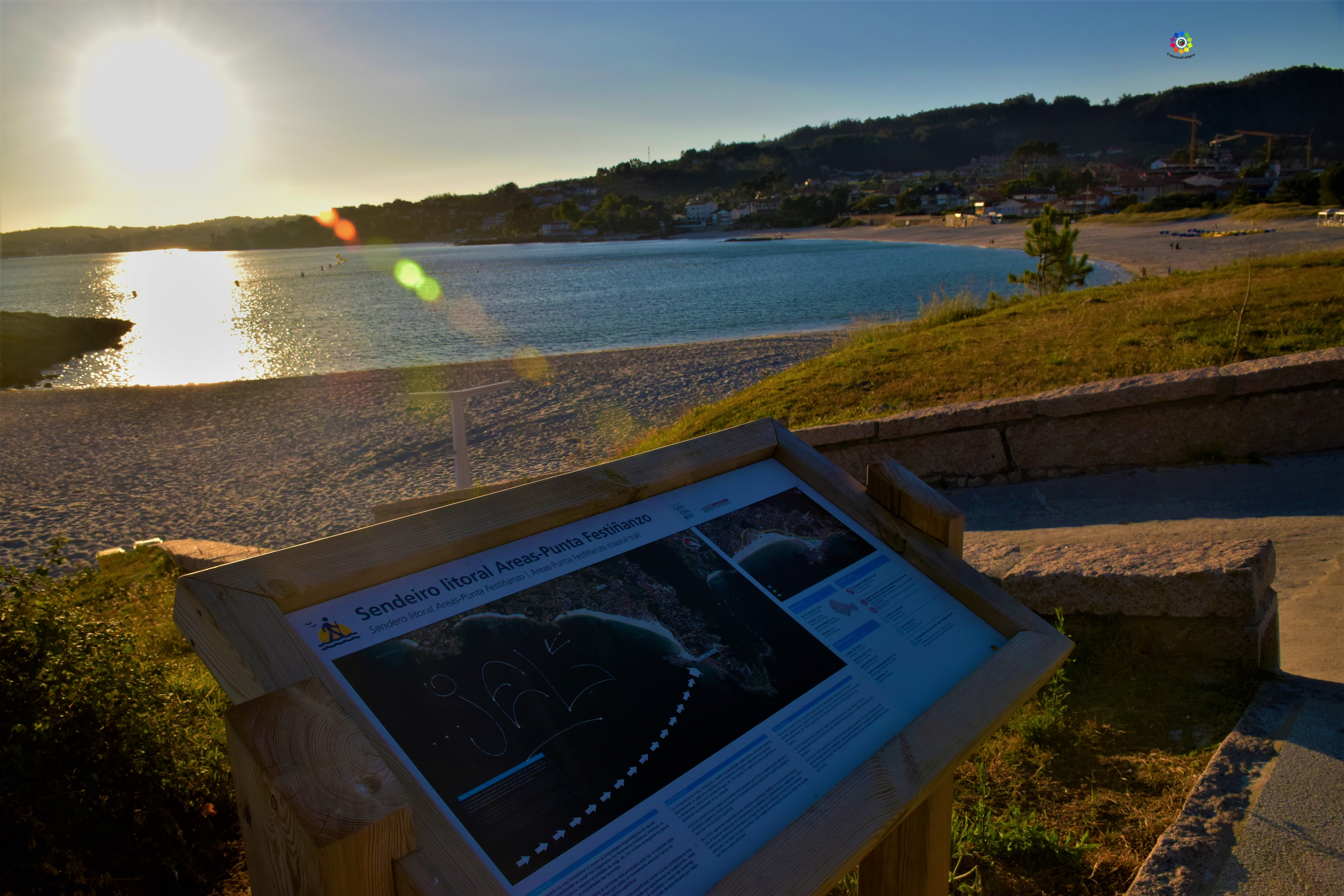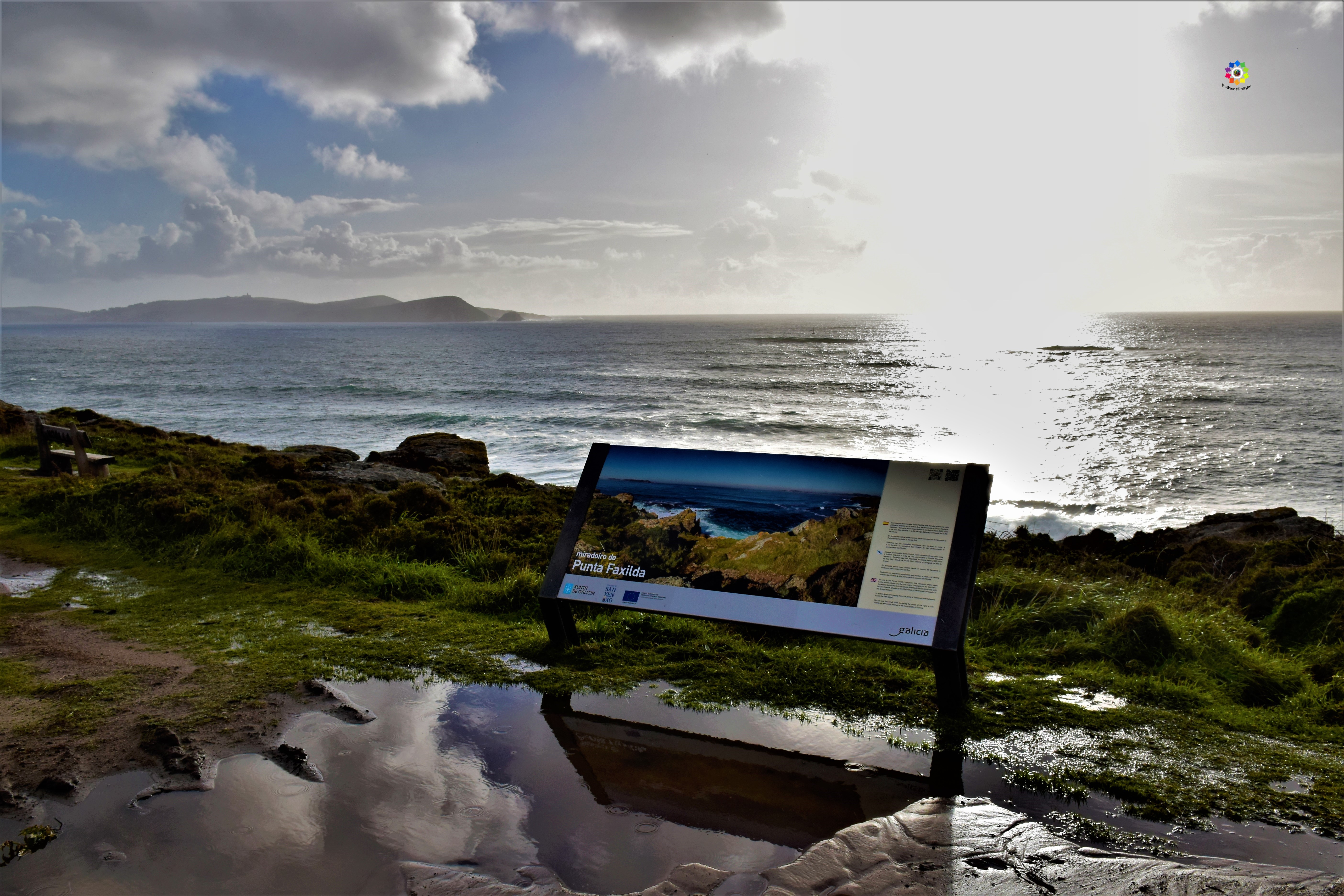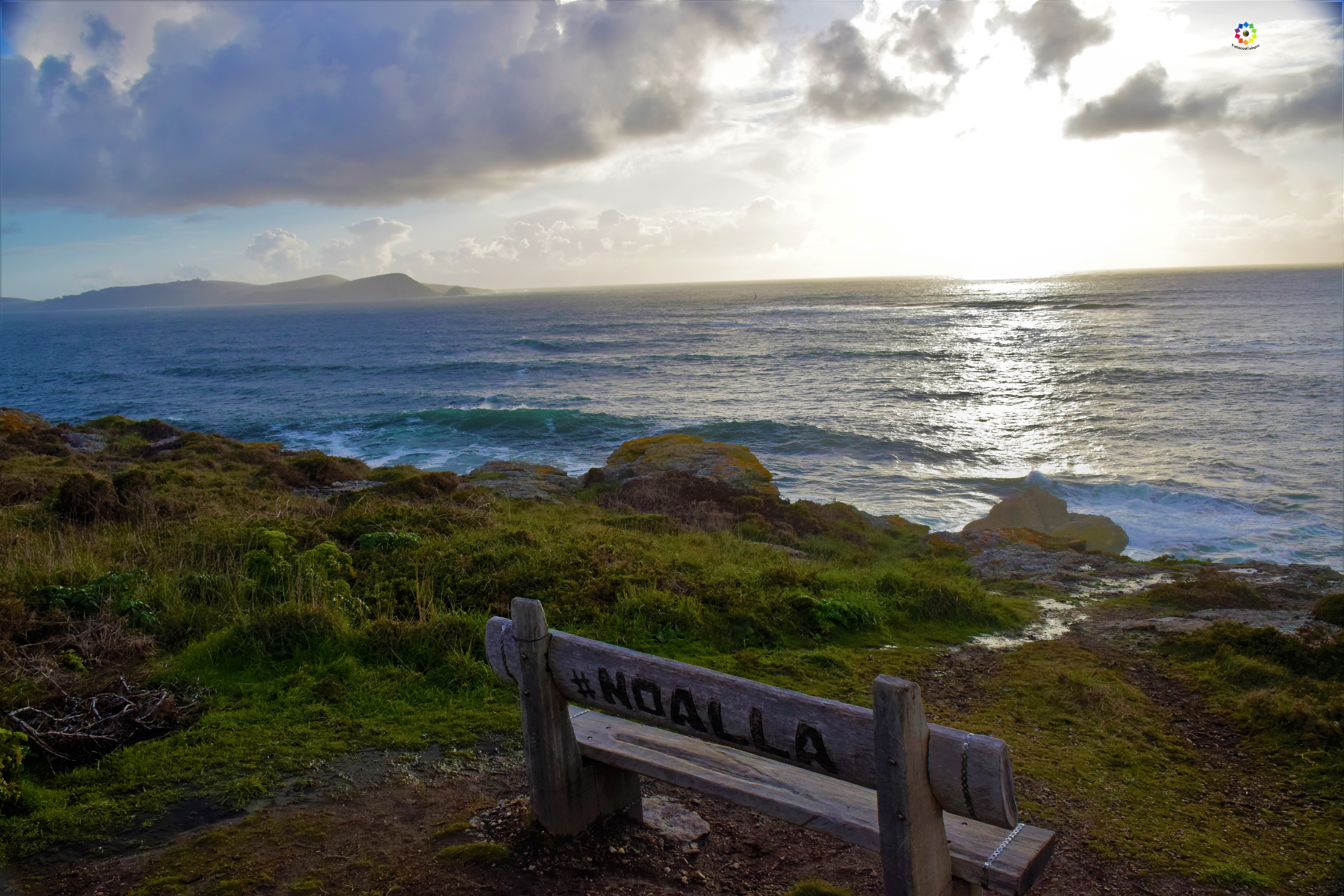 Además de esta maravilla que yo llamo «La Puerta del Paraiso» aquí os encontareis uno de los famosos bancos con vistas del concello de Sanxenxo desde el que podemos observas las Islas Cíes, Ons, Sálvora… Un lujazo para los sentidos.
