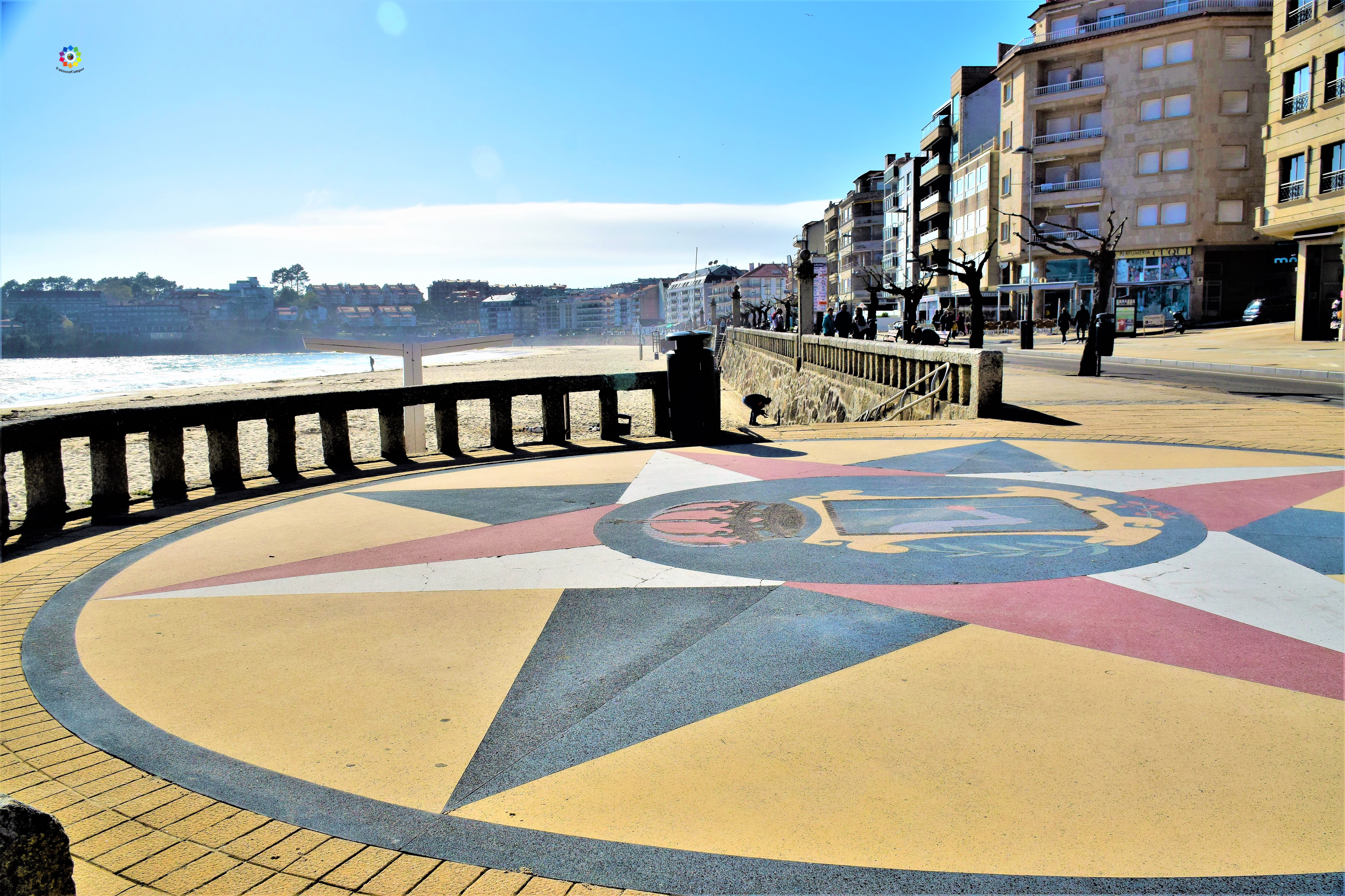 Y en pleno centro del paseo de Silgar nos encontramos otro de sus símbolos, la Rosa de los Vientos desde la que se observa toda la playa y tiene las rampas de acceso a esta a cada lado.