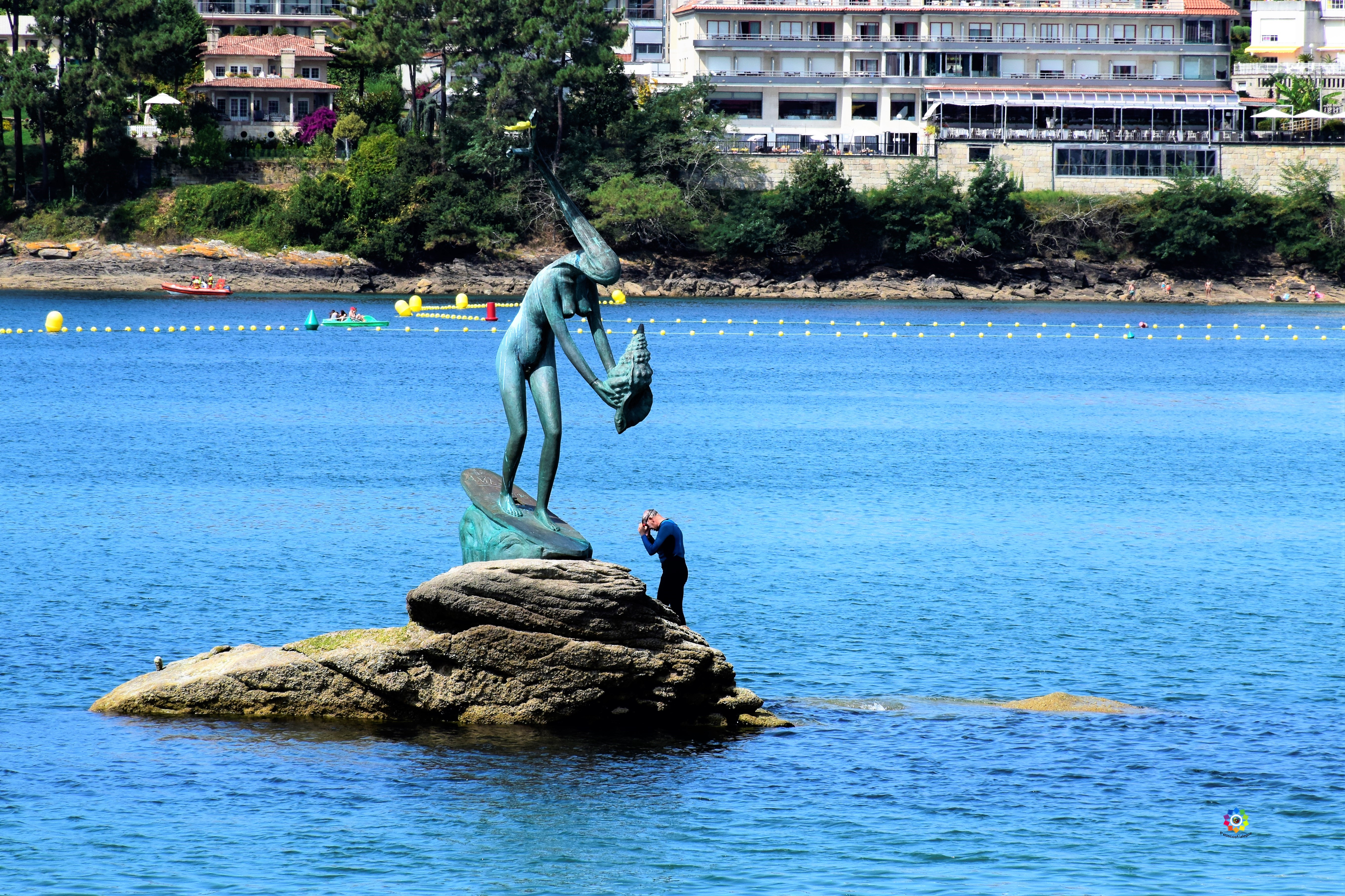 Con unas estupendas vistas a la playa de Caneliñas y la Ría de Pontevedra, aquí nos encontramos a «A Peixeira» , una escultura hecha en honor a las mujeres que salían del puerto con su cesta en la cabeza, escultura de Alfonso Vilar creada en 1994.
