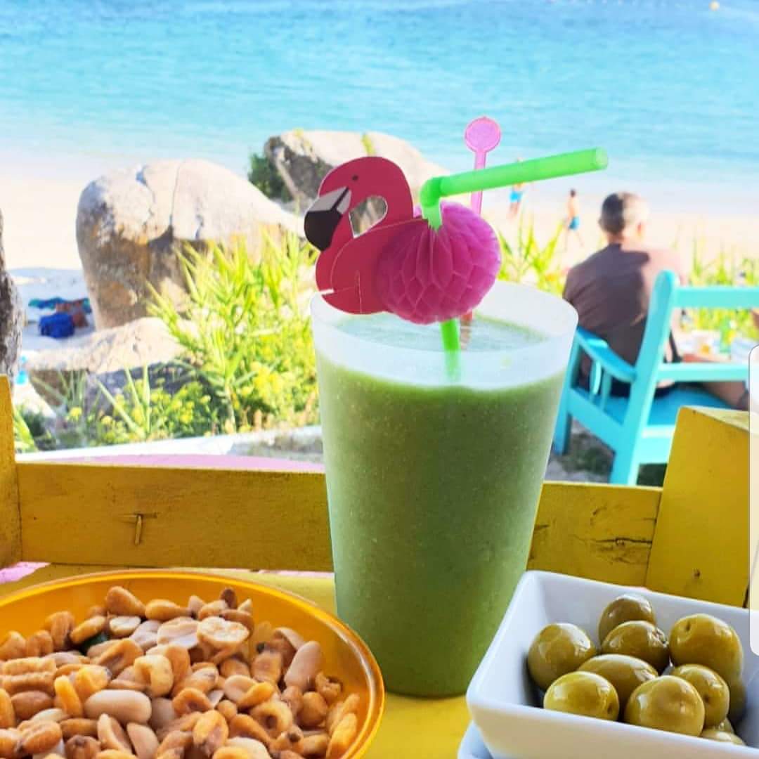 Tiene ricos batidos, mojitos, caipirinhas, cervezas y un amplio abanico de opciones varias para disfrutar de la cala mas bonita de Sanxenxo.  Dispone de alquiler de paddel surf y de kayaks.