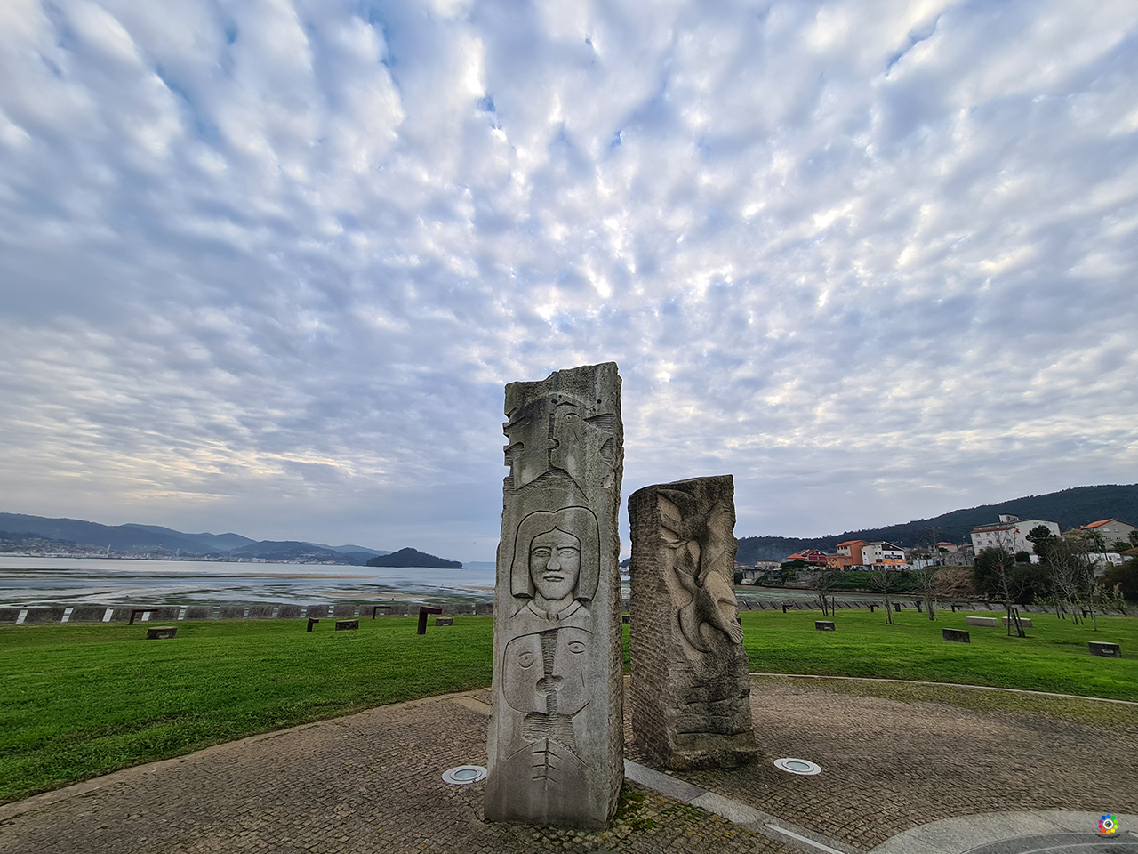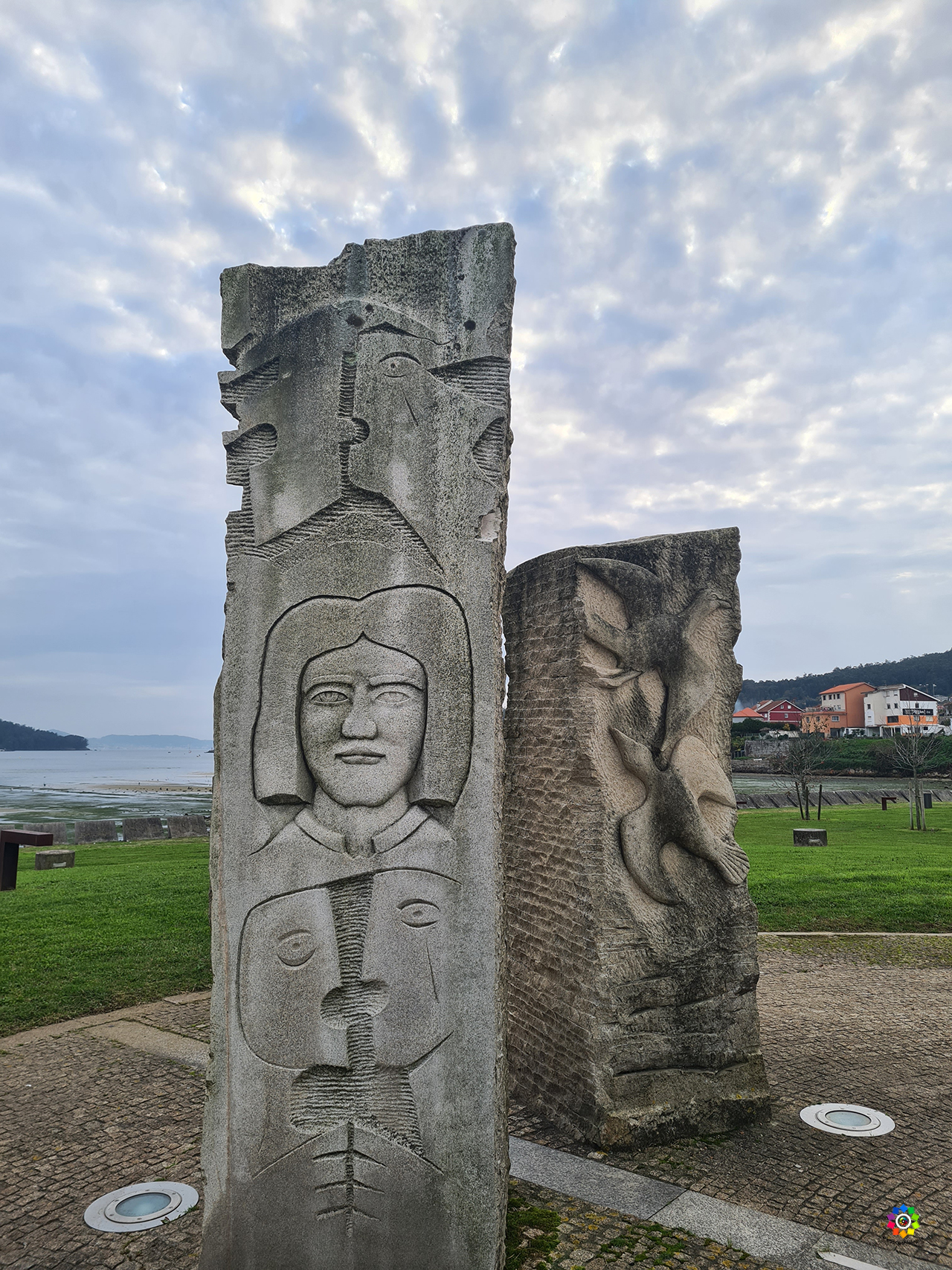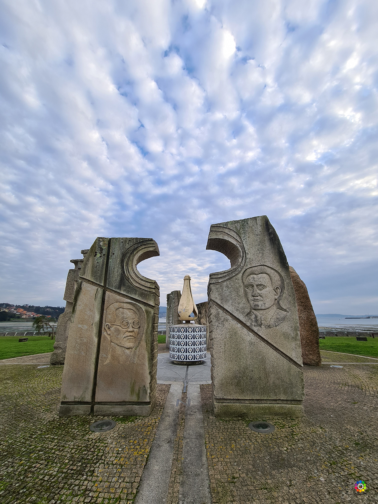 Se trata de cuatro conjuntos colocados sobre una rosa de los vientos: El del Norte está formado por dos piezas en las que están grabados los rostros de Rosalia de Castro, Alexandre Bóveda y Castelao; el del Sur está integrado por otros dos monolitos; y los dos restantes se reparten entre el Este y el Oeste.