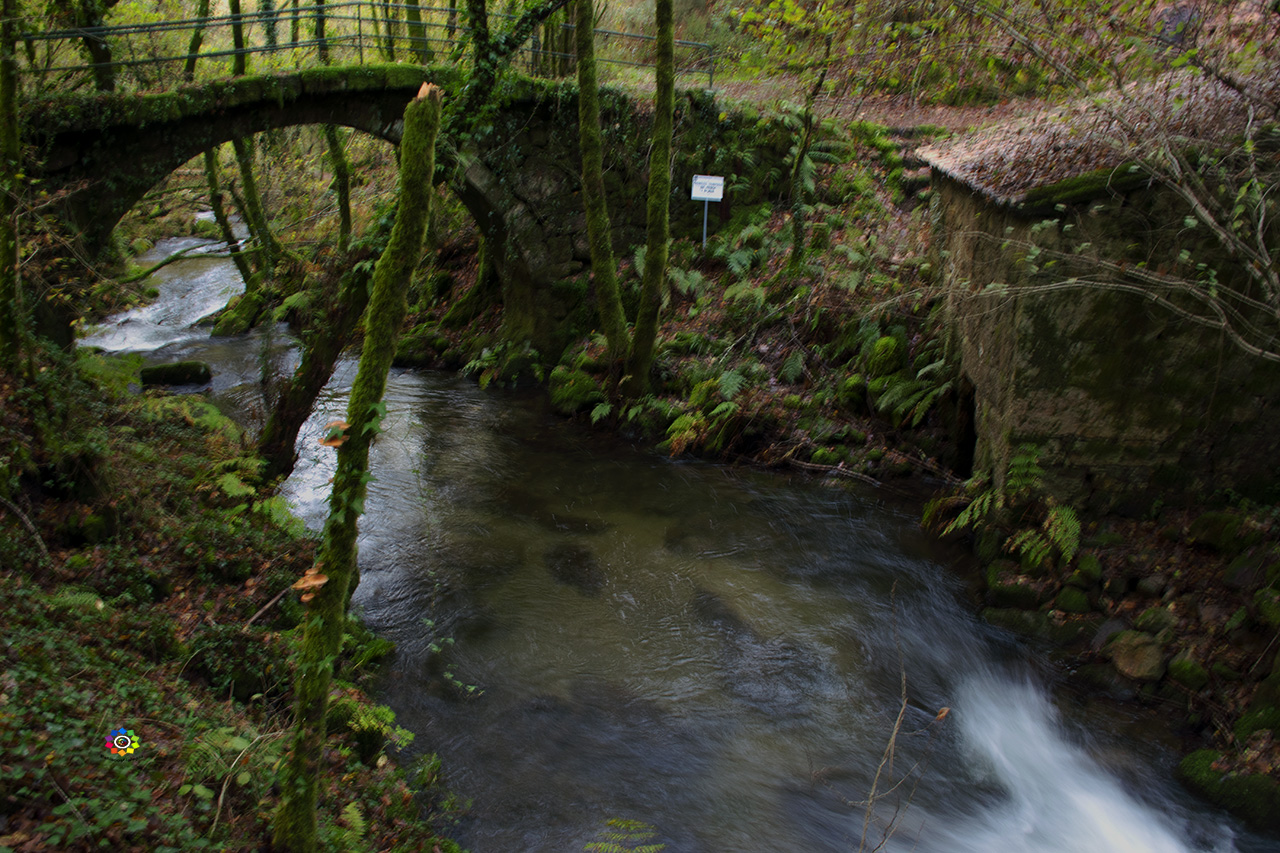 Una vez llegais al puente, justo a la derecha, comienza un sendero, parte de el empedrado que os llevará a la parte superior de la fervenza de a Freixa.