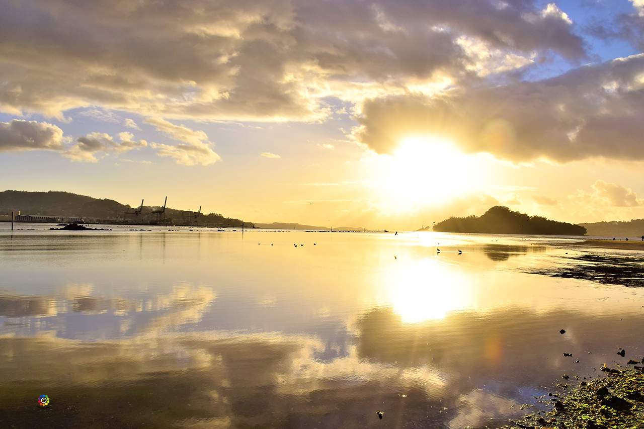 Es un lugar fantástico para ver la puesta de sol, y si vais un día sin viento, cuando está bajando la marea , os encontrareis una imagen de lo más instagrameable. El agua crea una fina capa que hace de espejo en el que se reflejan las nubes y el sol se esconde tras la isla de Tambo creando un conjunto maravilloso para la captura de una imagen perfecta.