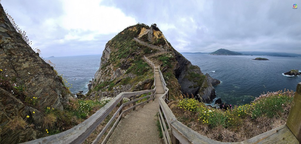 Desde aquí tendreis unas espectaculares vistas a la Ensenada da Pereira y la Isla Colleira hacia el Oeste, el islote de a Gaveira, el Monte Faro y la playa de Area ( en el extremo oriental de la ría de Viveiro) y la ensenada de Esteiro ( en Xove) hacia el Este, y hacia el Norte la linea de horizonte en mar abierto en la que se juntan cielo y mar.