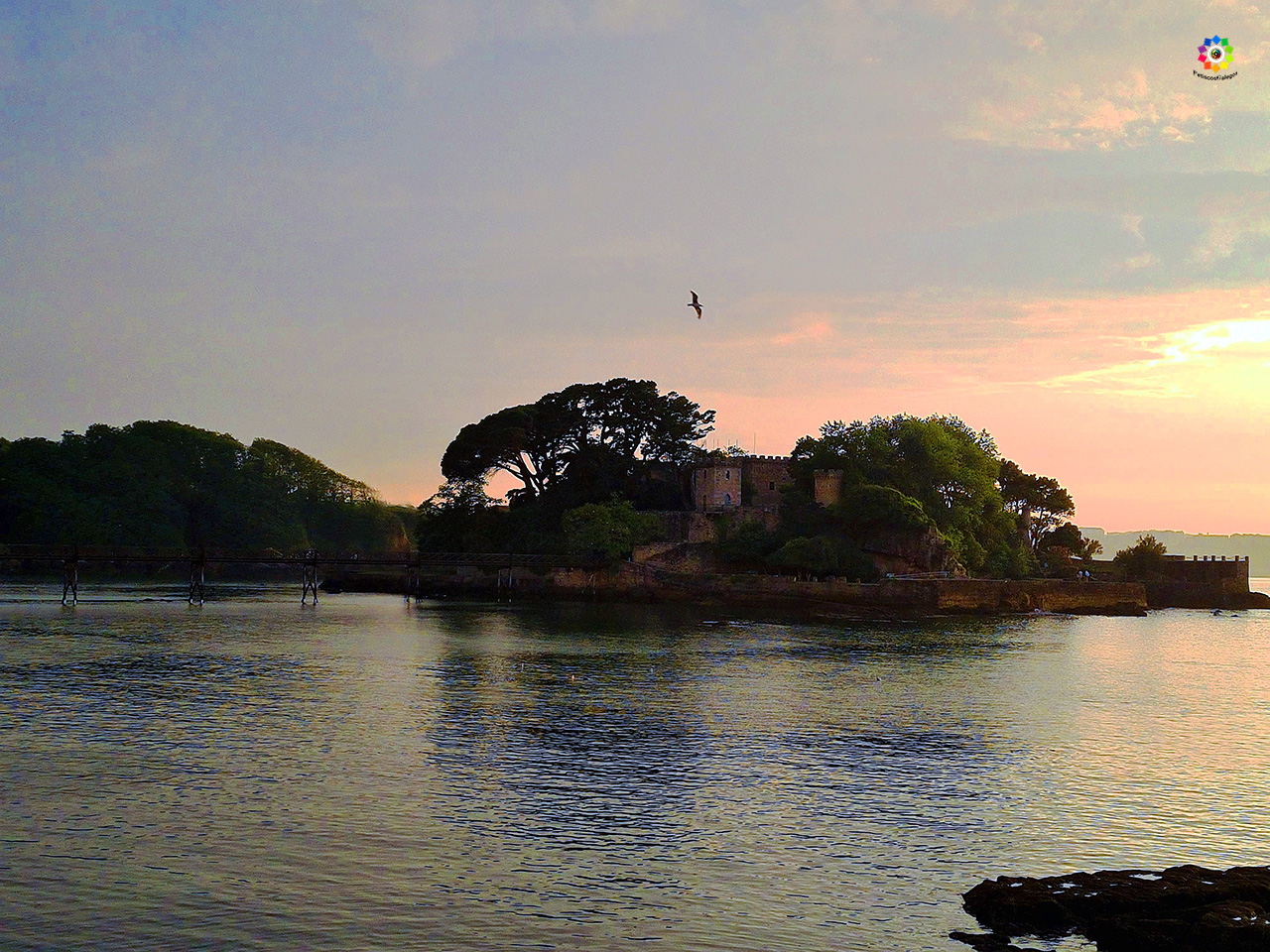 Una vez pasamos bajo el imponente puente, nos llama la atención una estructura que se alza sobre la ría. Se trata del Cargadoiro, un antiguo cargadero de mercancías que era utilizado en un complejo minero industrial basado en la extracción de hierro. Este complejo se inauguró en 1903, a partir del 1927 se empezó a usar el ferrocarril también como medio de transporte de viajeros hasta que fué clausurado en el año 1966 tras el levantamiento de los railes. Actualmente aquí se ubica un parque etnográfico y , además , hace las veces de mirador sobre la ría. También se conservan los restos del Fuerte de San Damián, construido en 1624 y destruido por un ataque de los ingleses en 1719. Fué reconstruido en 1774 pero se volvió a destruir durante la Guerra de la Independencia a causa de una explosión en 1809. El ayuntamiento lo restauró y actualmente se conserva el muro exterior con su bastión, las tronas, el hoyo y los contrafuertes. Se utiliza como sala de exposiciones.