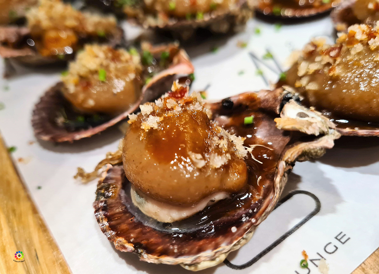 . longueirón con puerro y una mariñeira con espumoso gallego y aceite de oliva