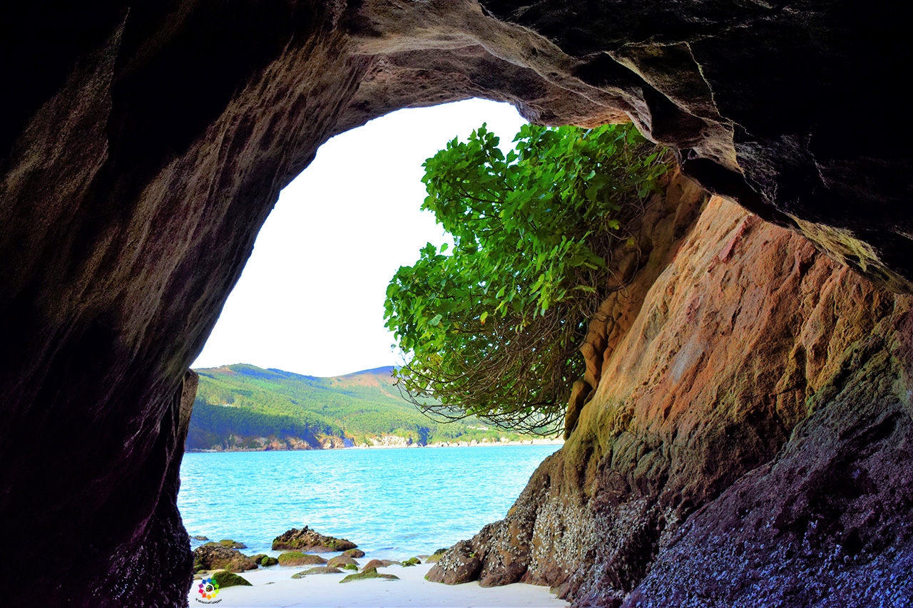 Y en la parroquia de Covas, escondida en sus escarpados acantilados , entre Punta da Insua y Punta do Cabalo nos encontramos la Cova da Doncela ( cueva de la doncella) , lo que a priori parece un simple agujero en la tierra por el que hay que entrar a gatas , se va ampliando hasta convertirse en su parte final en una ventana a unos 10 metros de altura con vistas al mar.