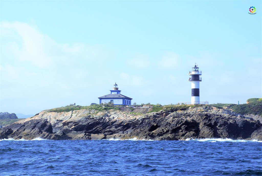 La travesia desde Ribadeo a Viveiro nos dejó imágenes inolvidables de la costa en esa zona y pudimos disfrutar de la vista de otro de los lugares mas bellos cerca de Ribadeo como es Illa Pancha. Esta isla, situada a unos 2km del centro de Ribadeo alberga el faro de Ribadeo ( el primero que nos encontramos viniendo de Asturias ) desde 1857 hasta 1983, fecha en la que se construyó el nuevo faro consistente en una torre de hormigón cilíndrica de franjas negras y blancas .