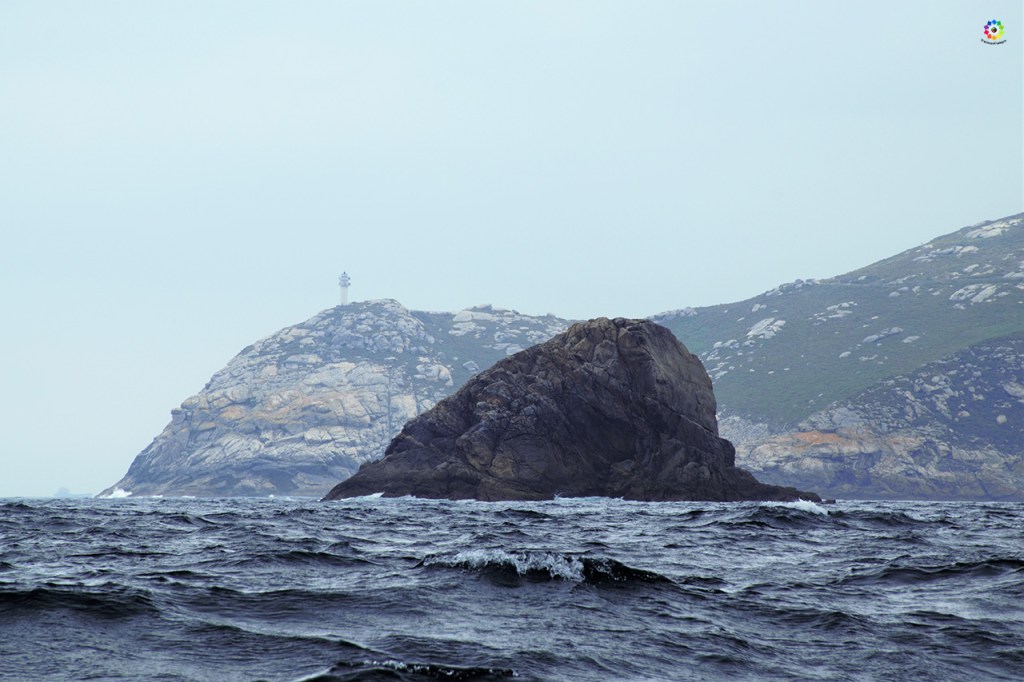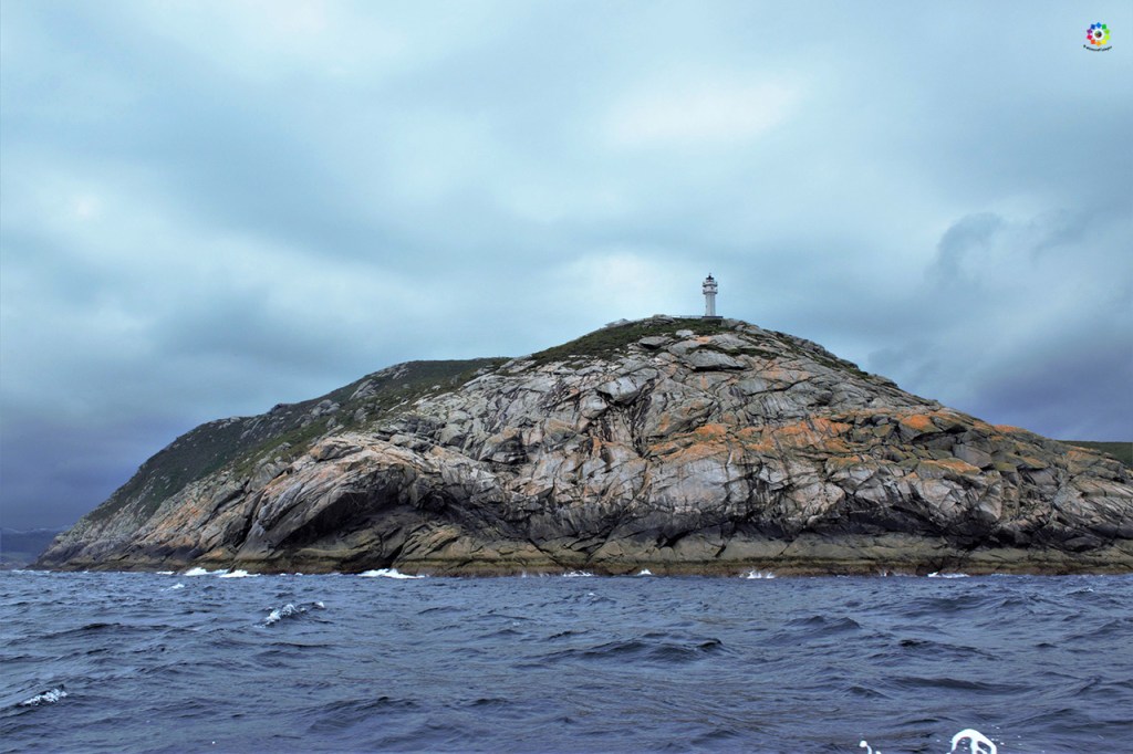 Navegamos al lado de Isla Coelleira, situada en la salida de la Ria de O Barqueiro, tiene forma de trapecio irregular de más de 1km y parece hundirse en el mar. En ella hay un faro de la misma época que los de Illa Pancha y el de la Atalaia de san Cibrao.
