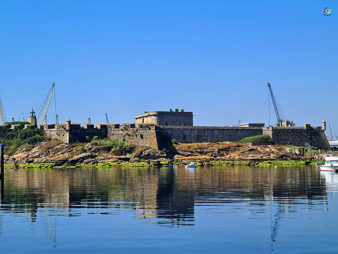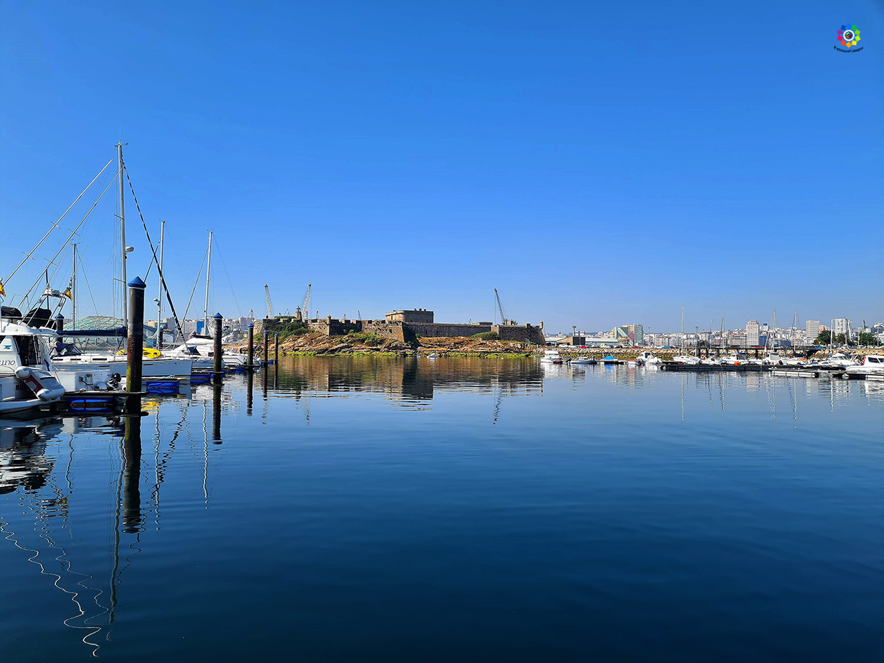 Vemos el Castillo de San Antón desde el mar, este castillo del siglo XVI formó parte , junto con el Castillo de Santa Cruz y el Castillo de San Diego , de una red estratégica de castillos y baterias para defender la ciudad de A Coruña.