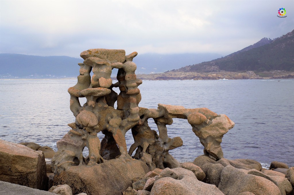 Aquí os recomiendo otra visita, para disfrutar de las obras de arte y conocer la vida de Man el Alemán de Camelle (Manfred Gnädinger) , fue un pintor, filósofo y escultor alemán que vivió como un anacoreta en la parroquia de Camelle. Llegó a los 25 años y aquí se quedó hasta su muerte, en el año 2002, cuentan que se dejó morir con la pena que le produjeron las consecuncias del hundimiento del Prestige que tiñó de negrura su jardín frente al mar, construido durante décadas .