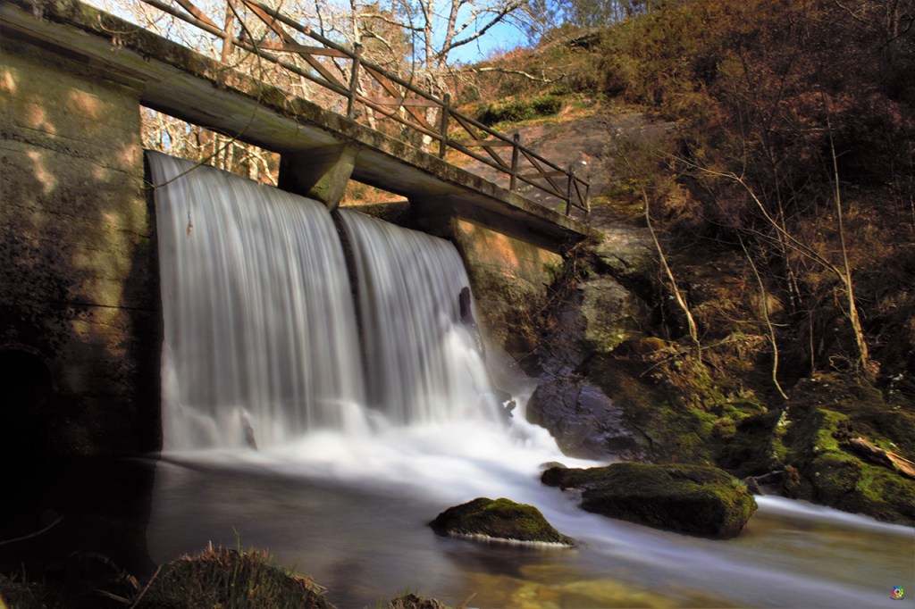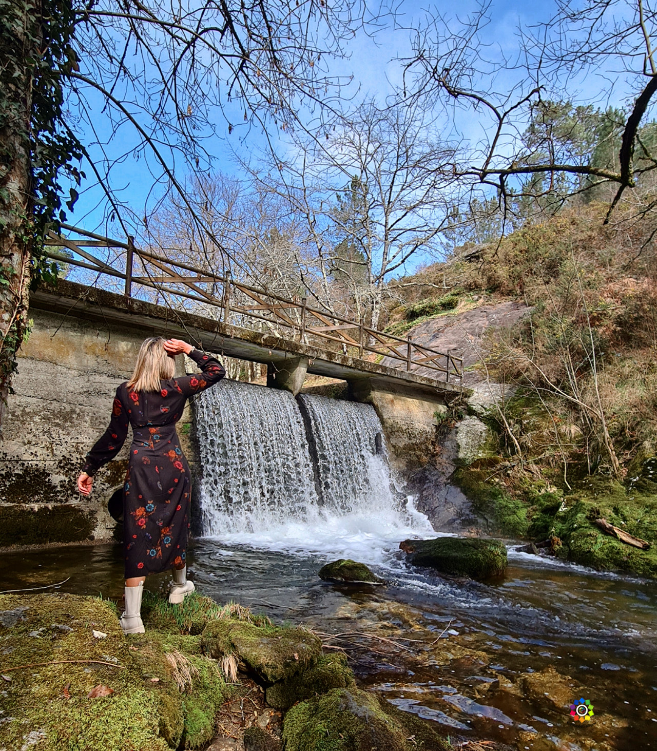 La fervenza la encontraréis al inicio de la senda, justo al lado del primer molino . Se forma en uno de los extremos de la enorme piscina natural , bajo un puente que la cruza .