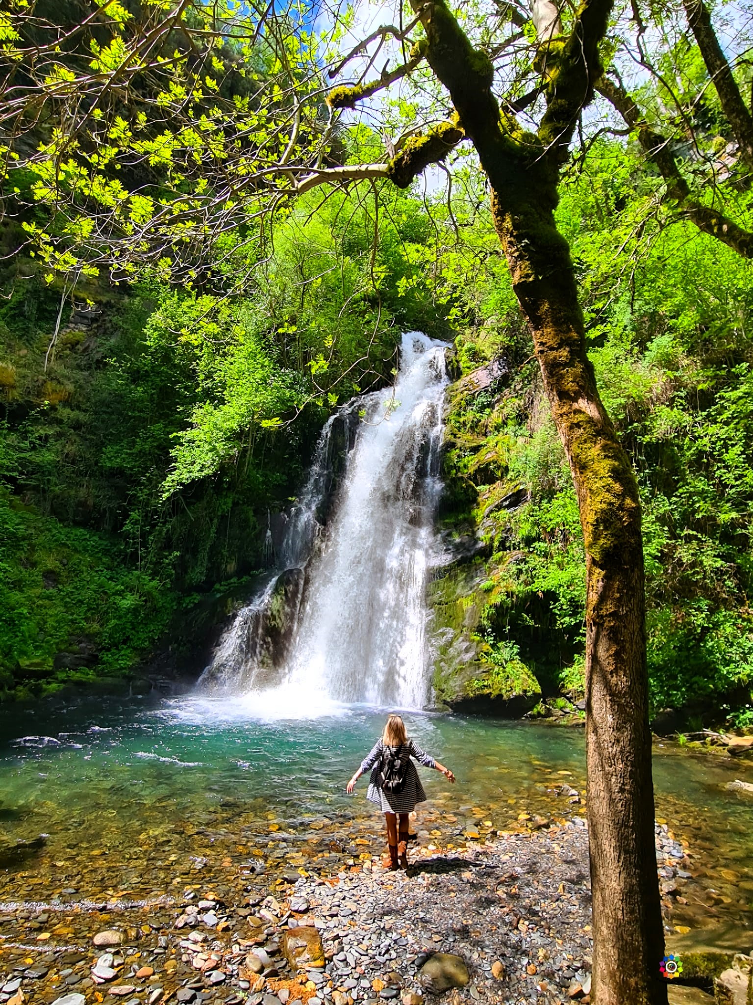 Si quieres descubrir un lugar realmente mágico no te puedes perder esta maravilla . Ubicada en una de las zonas más espectaculares de Galicia, en el corazón de la Sierra de O Courel. Una de las cascadas más bonitas que hemos visitado, en un entorno que parece sacado de un cuento , rodeada de una exuberante vegetación , esta preciosidad de cascada, de unos 25m de caída, forma una piscina natural de aguas turquesa espectacular. El agua continúa río a bajo formando saltos y pasando bajo un puente de madera casi camuflado con la vegetación.