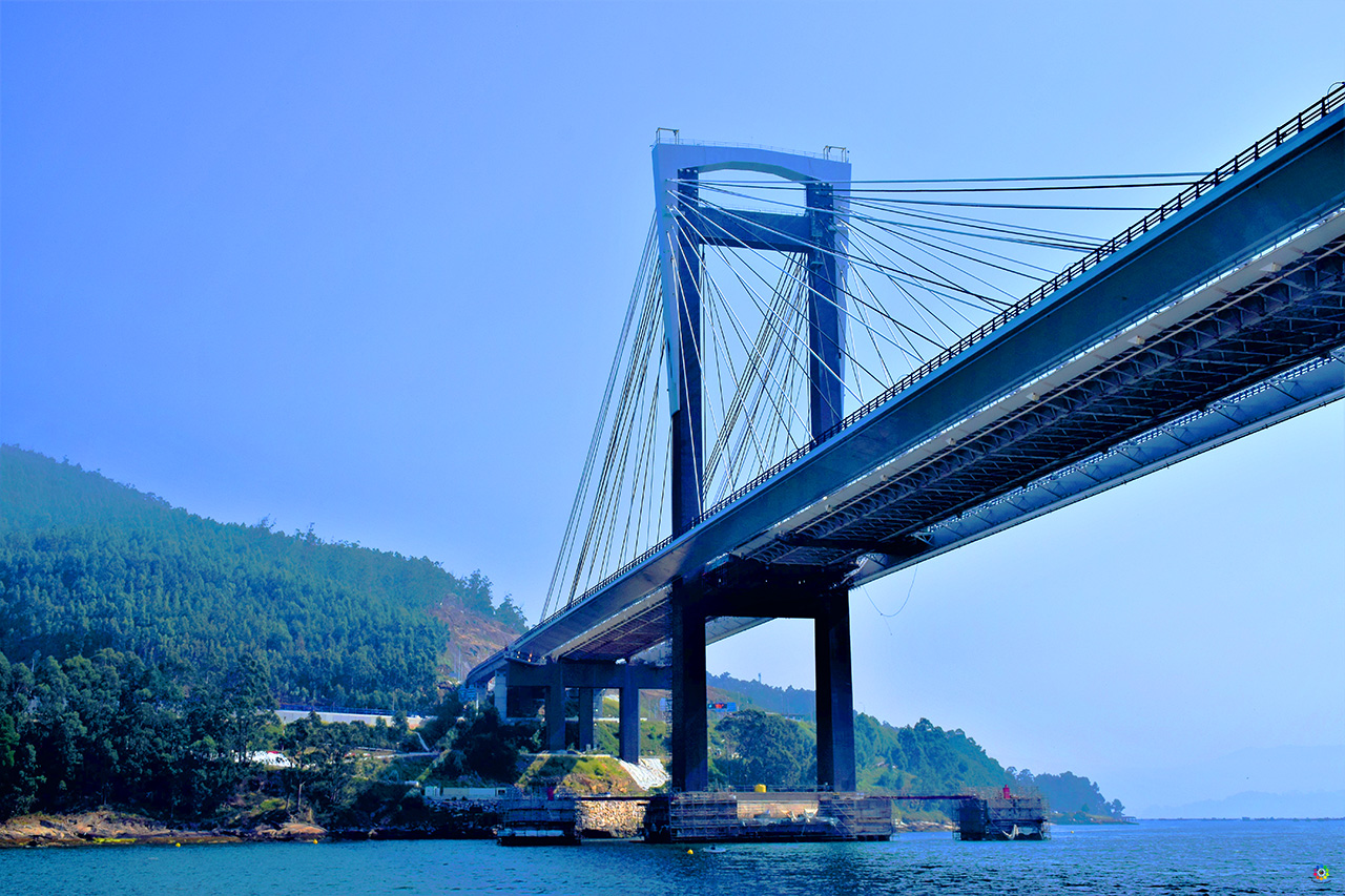 En un momento se alza ante nosotros el majestuoso Puente de Rande y tenemos el privilegio de obtener unas vistas únicas al pasar por debajo, nada que ver con la imagen que apreciamos desde tierra firme.
