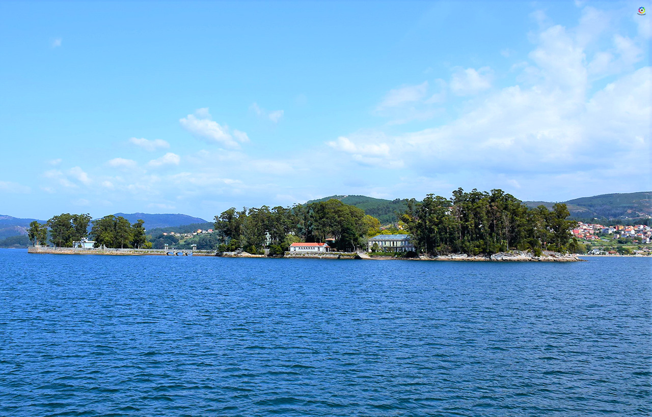Y de repente aparece ante nosotros la Isla de San Simón, unida a la Isla de San Antón por un puente, fue declarado Bien de Interés Cultural por la Xunta de Galicia en 1999 y la isla y su ensenada forman parte de la Red Natura 2000 como hábitat natural europeo protegido.