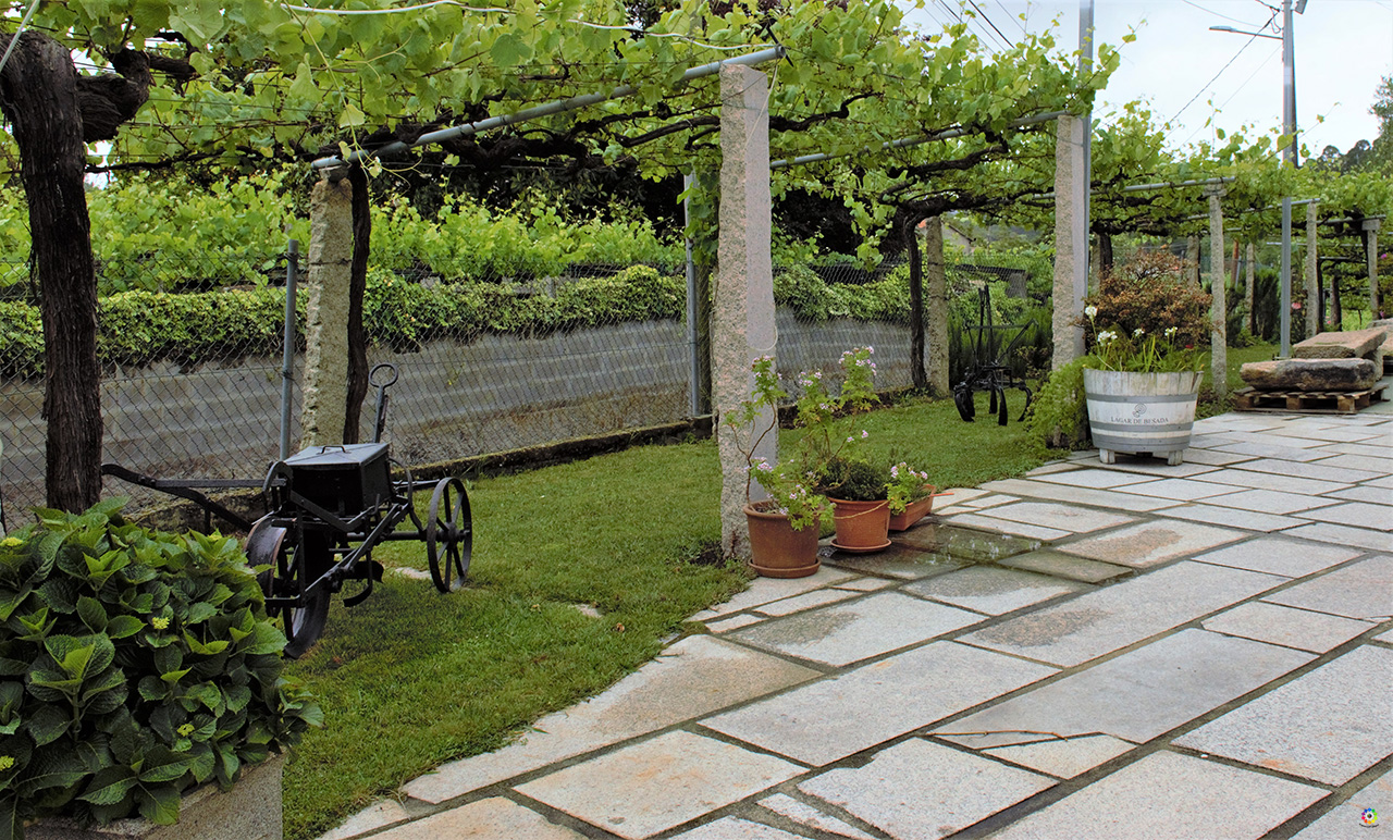 Puedes realizar la reserva, imprescindible, a través de su página web y está perfectamente localizado en maps aunque debes fijarte bien porque el último cruce se te puede pasar, verás un callejón a la derecha y al fondo el cartel con el nombre del restaurante. Tiene aparcamiento propio, comedor interior y una preciosa terraza exterior bajo una parra. Localización Taberna O Lagar en Eiras