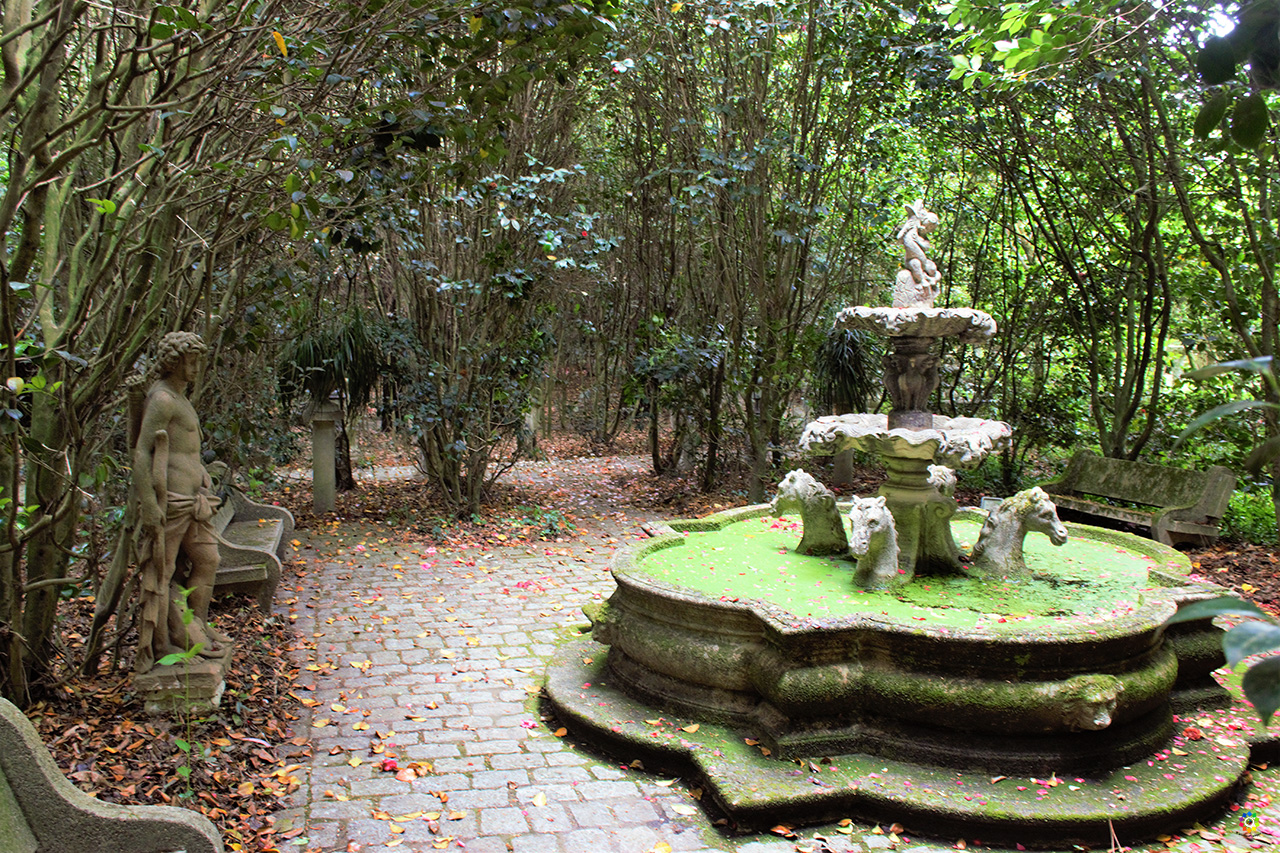 Mitad fortaleza medieval, mitad palacio neogótico del siglo XIV, rodeado por el primer jardín de España y séptimo de Europa en ser reconocido como Jardín de Excelencia Internacional de la Camelia (febrero 2012) .