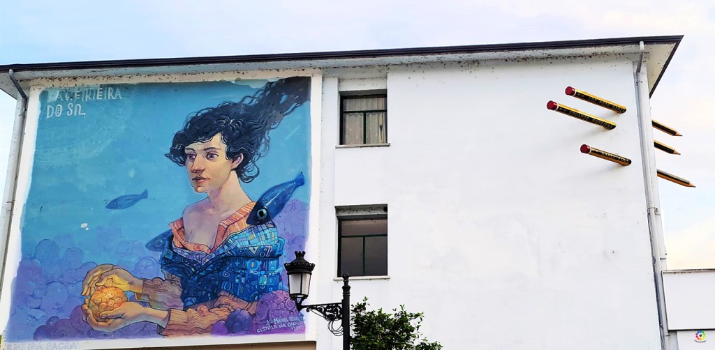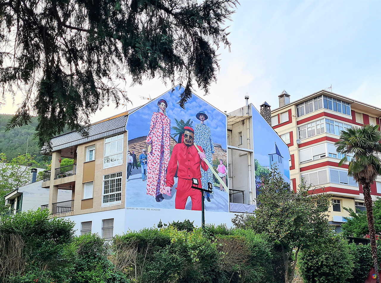 La Ruta comienza en la oficina de turismo, situada en el edificio de la Casa de la Cultura, no tiene perdida, ya que , en este lugar verás como unos gigantescos lápices atraviesan el edificio. Se trata de la obra » Os Lápices da Cultura» del año 2021, realizados por el salmantino Felipe Piñuela y que pretenden poner en valor la cultura literaria quiroguesa. En la confluencia de la calle Real con la calle San Martiño de Abaixo, encontramos la » Súper avoa vendimiadora«, un obra de Joseba Murúzabal en el año 2020, con la vendimiadora Erundina como protagonista. En una fachada de la Rúa Lago , se encuentra la obra más reciente, » Peregrina de inverno» , de Mon Devane, año 2021. En la Praza Maior, «Alvariza» de Germán González, año 2020, un mural que pone en valor uno de los productos típicos de la zona, la miel, con la representación de un oso merodeando la alvariza en busca de miel. La alvariza es una construcción de piedra, circular que protege las colmenas de abejas de los osos. «Xove na beira da auga» de Iván Floro, artista barcelonés conocido como Van_vuu , 2021, es el siguiente mural de la ruta. En la Plaza de España nos encontramos a «Rosalía de Castro» , obra de Pablo López Sanjurjo, 2021, un retrato de una artista referente para el derecho de la mujeres, la defensa del idioma gallego y la denuncia de la emigración. «Bésame en esta esquina» está en dirección al Centro de Salud, es una obra del quirogués José Luis Lemos , año 2021, el rincón ideal para los románticos.