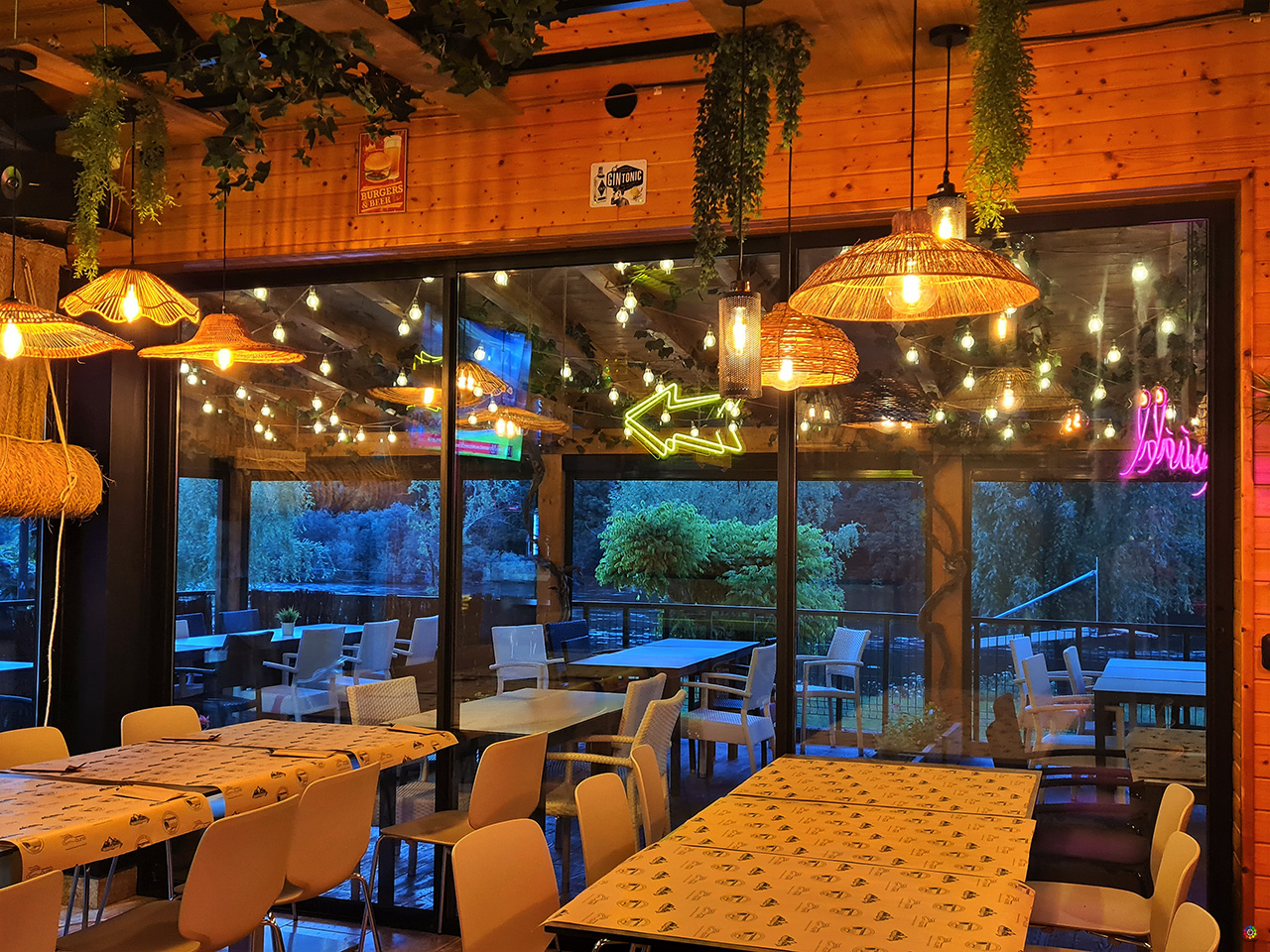 En una ubicación fantástica, la playa fluvial de San Clodio, te hemos hablado de ella , esta es otra de las opciones estupendas para comer o cenar. Pertenece al municipio de Ribas de Sil pero queda muy cerquita del centro urbano de Quiroga. El entorno es precioso, cuenta con una fantástica terraza exterior con vistas al río, dividida en dos partes, una abierta y otra cubierta, con una decoración de esas super chulas con un montón de luces. El comedor interior también es muy bonito . Puedes ir también a tomar unas cañas, un buen vino y acompañarlo de exquisitas tapas y raciones. Además de hamburguesas, pizzas y bocadillos cuentan con platos exquisitos, especialmente elaborados a la brasa.