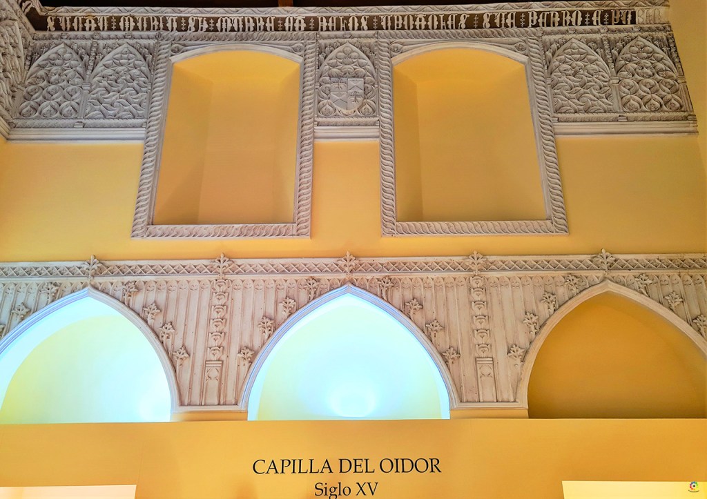 Destaca la Capilla del Oidor, recibe el nombre de su fundador, el «oidor» del rey Juan II de Castilla, Don Pedro Díaz de Toledo, a comienzos del siglo XV para enterramiento de su familia. Aquí se trasladó en 1905, con motivo de su restauración, la pila donde recibió las aguas bautismales Miguel De Cervantes, el 9 de Octubre de 1547. También se expone una copia facsímil del libro de bautismos de la parroquia de santa Maria, con la partida de Miguel de Cervantes y reproducciones de las de cuatro de sus hermanos también bautizados en esta parroquia.