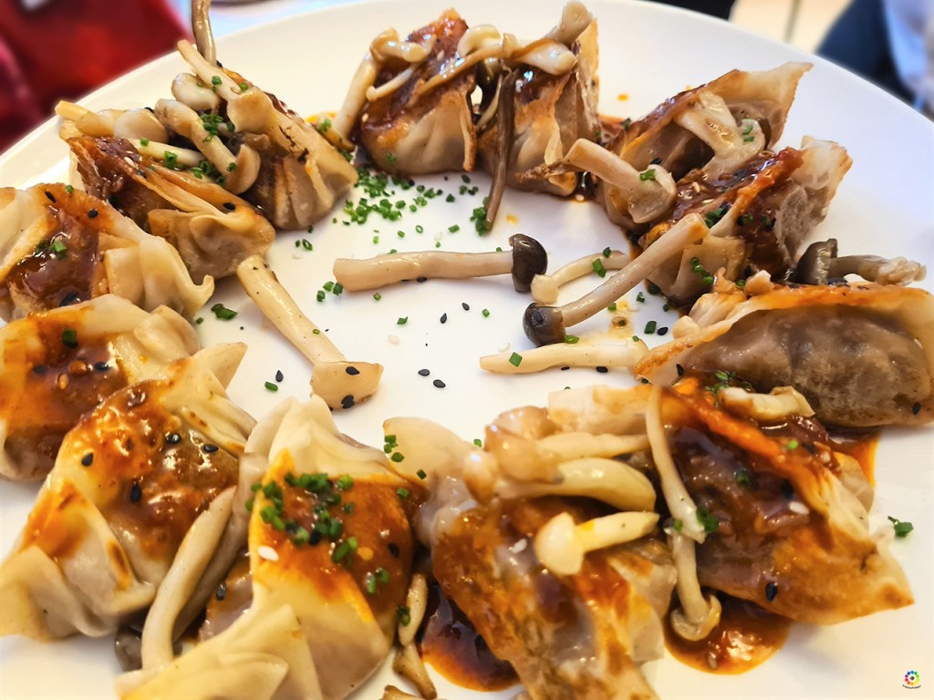 Gyozas de carne de vaca madurada con salsa Sichuan y setas