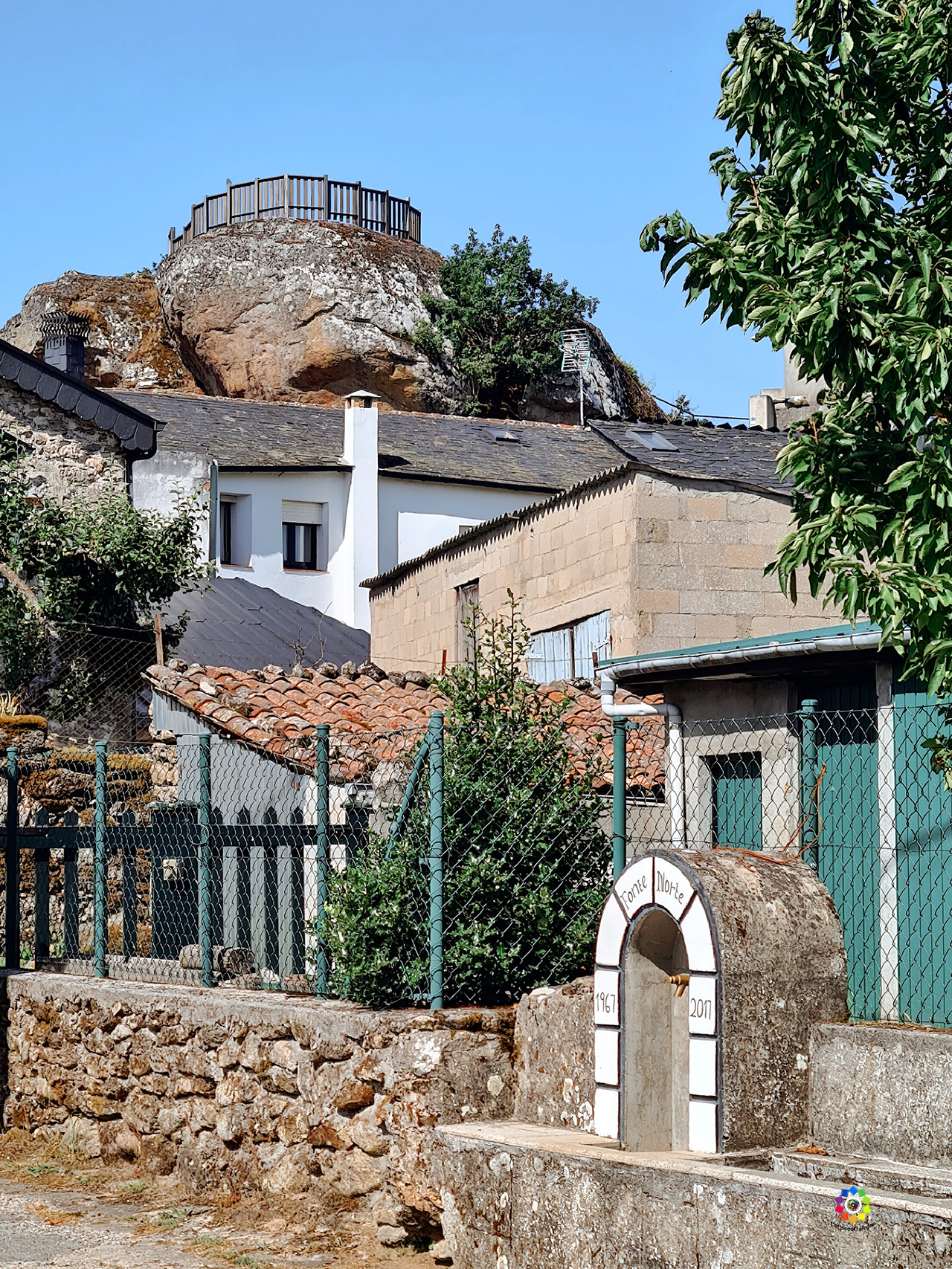 Pero la sorpresa está en la cima de la roca, se accede por una escalera después de abrir una pequeña cancilla ( vuelve a dejarla cerrada, por seguridad) y una vez arriba te quedarás asombrado . Un fantástico mirador en el que te encontrarás con una panorámica 360° , desde donde verás: la Fraga de Río, San Xoán de Río, el río Navea, el río Bibei, Cabeza de Manzaneda, A Pobra de Trives y hasta Pena Trevinca.