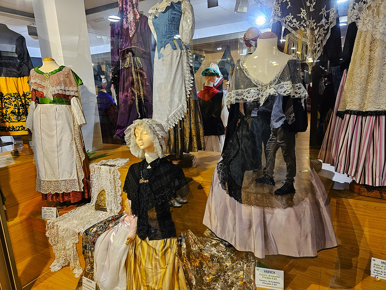 En el Museo, más de 1.000 trajes, coleccionados durante 50 años, todos relacionados con el mundo de la danza y el espectáculo, trajes regionales , de España y de otros países, autenticas joyas de artistas tan conocidas como Rocio Jurado, cientos de cruces votivas , imaginería religiosa, angeles… accesorios de todo tipo: sombreros, castañuelas , zapatos… una colección impresionante de la que se muestra solo una parte en el museo debido a falta de espacio para exponerlo todo. La trastienda es una auténtica fantasía de trajes de época, batas de cola, accesorios….