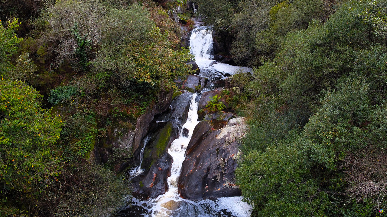 Nos vamos a visitar una cascada super bonita aunque desconocida y casi oculta entre la vegetación. Se trata de la Férveda de Portociños, perteneciente al municipio de Tordoia, si vas directamente desde la Casa Rural Dona María te llevará, en coche, poco más de 20 minutos. Como referencia, tendrás que coger un desvío desde la carretera por un camino de tierra, cuando fuimos nosotros se podía ciruclar con el coche sin problema, unos metros más adelante llegarás a un pequeño puente, desde el que si te fijas se puede apenas intuir la cascada. Puedes aparcar por allí cerca. Para bajar a la cascada, son apenas unos metros y se hace rápido, el acceso no está acondicinado, una pena porque es un lugar precioso , pero no es muy complicado si tienes buena movilidad. Eso si, ten cuidado si ha llovido porque el suelo es bastante resbaladizo. Podrás ver , a medida que bajas, los restos de un antiguo molino a tu izquierda y una vez llegues abajo verás el último salto de la cascada. Aunque lo más espectacular, que no está accesible es la parte de arriba ,en la que se ven varios saltos de agua y alguna poza natural realmente preciosa. Nosotros pudimos verla al subir el dron. Un lugar que, desde luego, si lo acondicionaran sería un gran atractivo para la zona.