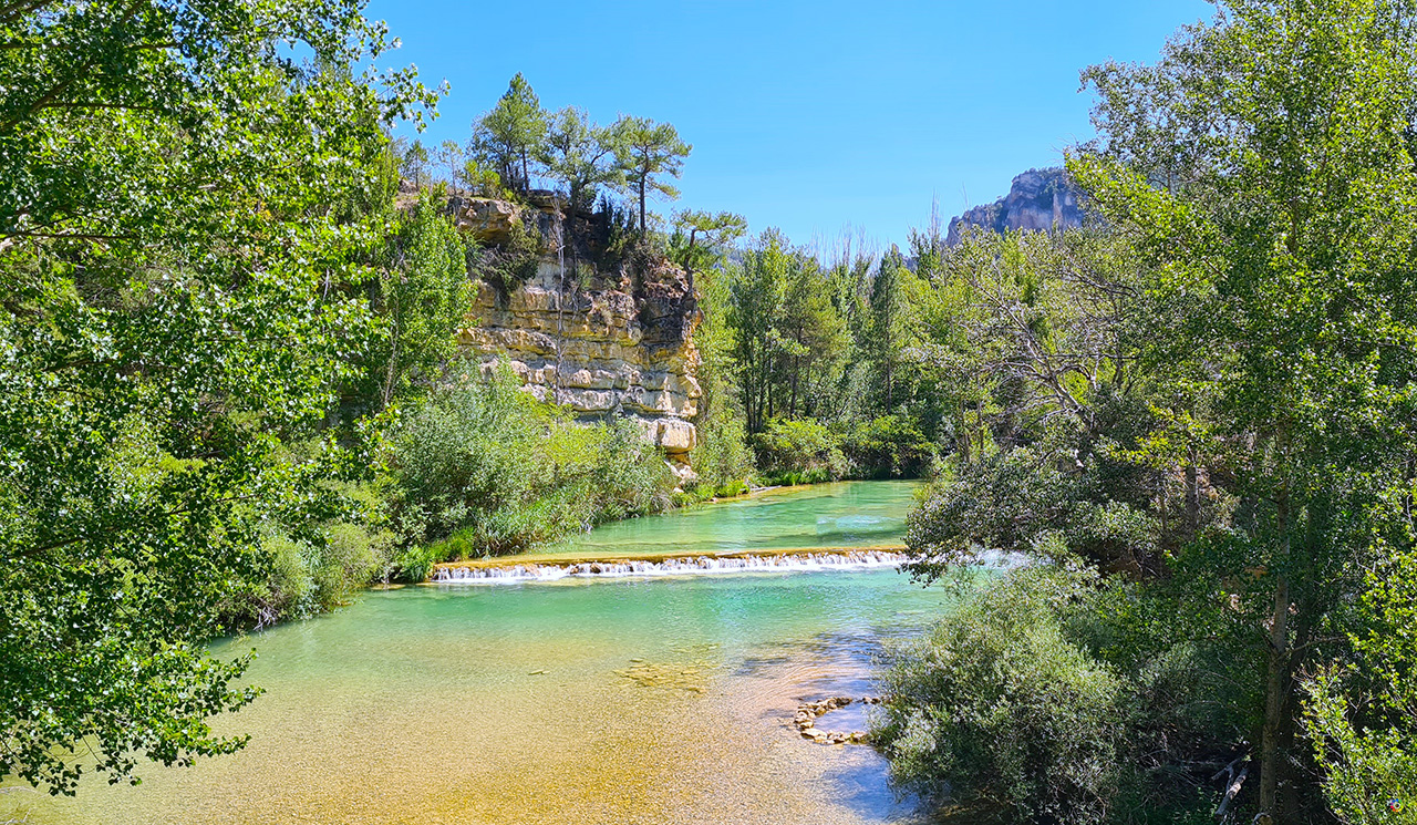 PUENTE DE SAN PEDRO: Unas pozas naturales, para refrescarte especialmente si vas en verano y en un entorno único. Si vienes de hacer la Ruta de las Caras, agradecerás toparte con este pequeño paraíso. Estamos en el Parque Natural del Alto Tajo , comarca del señorío de Molina , y entre Guadalajara y Cuenca , a 8km de la localidad de Zaorejas , nos encontramos esta maravilla natural de aguas cristalinas . Se trata de Puente San Pedro , donde se unen los ríos Tajo y Gallo , dando un color de lo más especial a estas aguas . Para llegar deberás coger la carretera CM-2015 , que une Zaorejas con Molina de Aragon .