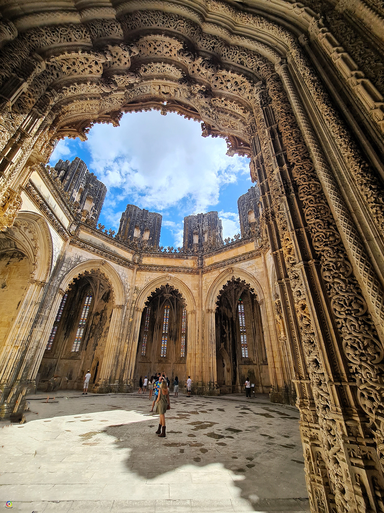 Su construcción se prolongó durante 7 reinados, de 1385 a 1580 y alberga el núcleo más importante de vidrieras medievales portuguesas. Sus capillas inacabadas te dejarán sin respiración, es una de las visitas más espectaculares que podéis hacer en Portugal. En la sala capitular del Monasterio, nosotros tuvimos la suerte de presenciar el cambio de guardia ante la tumba del soldado desconocido, en donde reposan los retos de dos soldados portugueses caídos en la Primera Guerra Mundial, y que guardan dos soldados permanentemente. Se realiza a las horas en punto desde las 9:00 hasta el cierre del Monasterio.