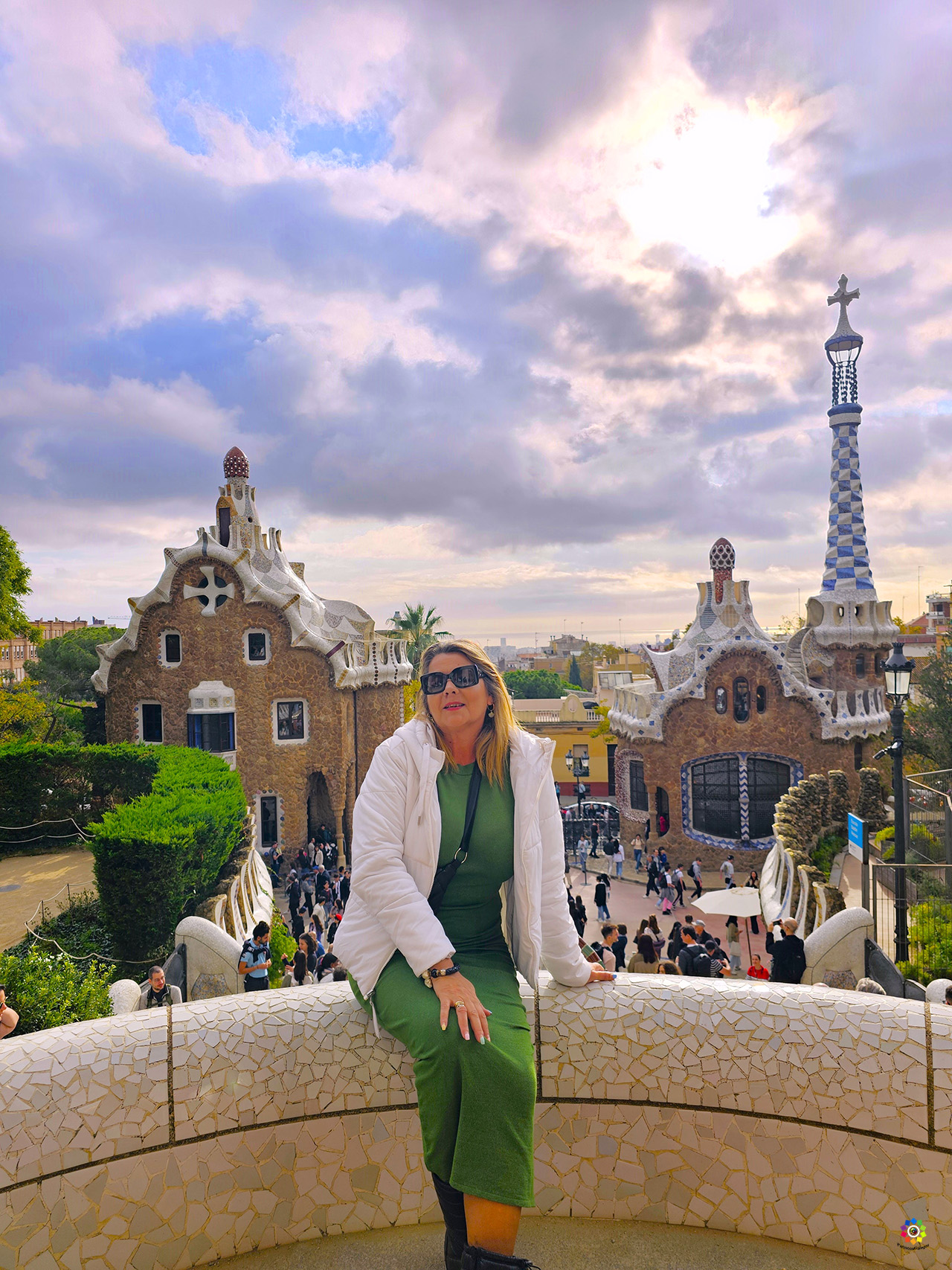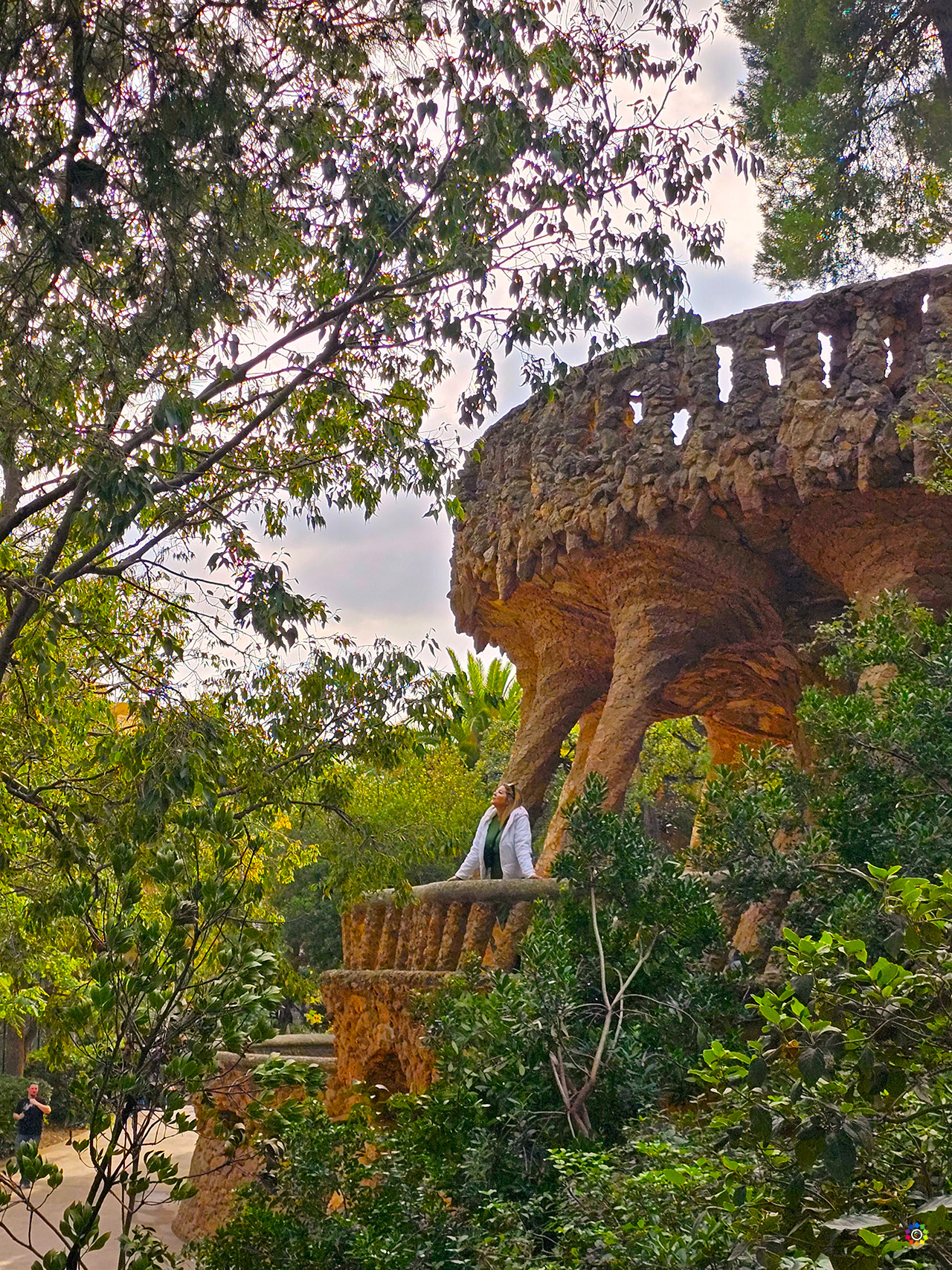 Es un lugar donde la naturaleza y la arquitectura se fusionan en perfecta armonía. Sus senderos serpenteantes, salpicados de esculturas y bancos de mosaico, te llevan a través de un paisaje lleno de color y vida. Desde la famosa Plaza de la Naturaleza o Teatro Griego, con su icónico banco serpentiniano, la Escalinata del Dragón, los viaductos de abajo, de medio y de arriba, la Sala Hipóstila, los Jardines de Austria, hasta las impresionantes vistas de la ciudad desde la Terraza de las Serpientes, cada rincón del parque ofrece una nueva sorpresa.