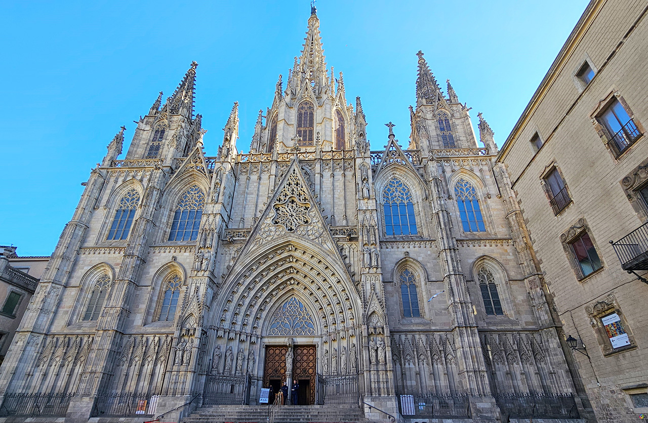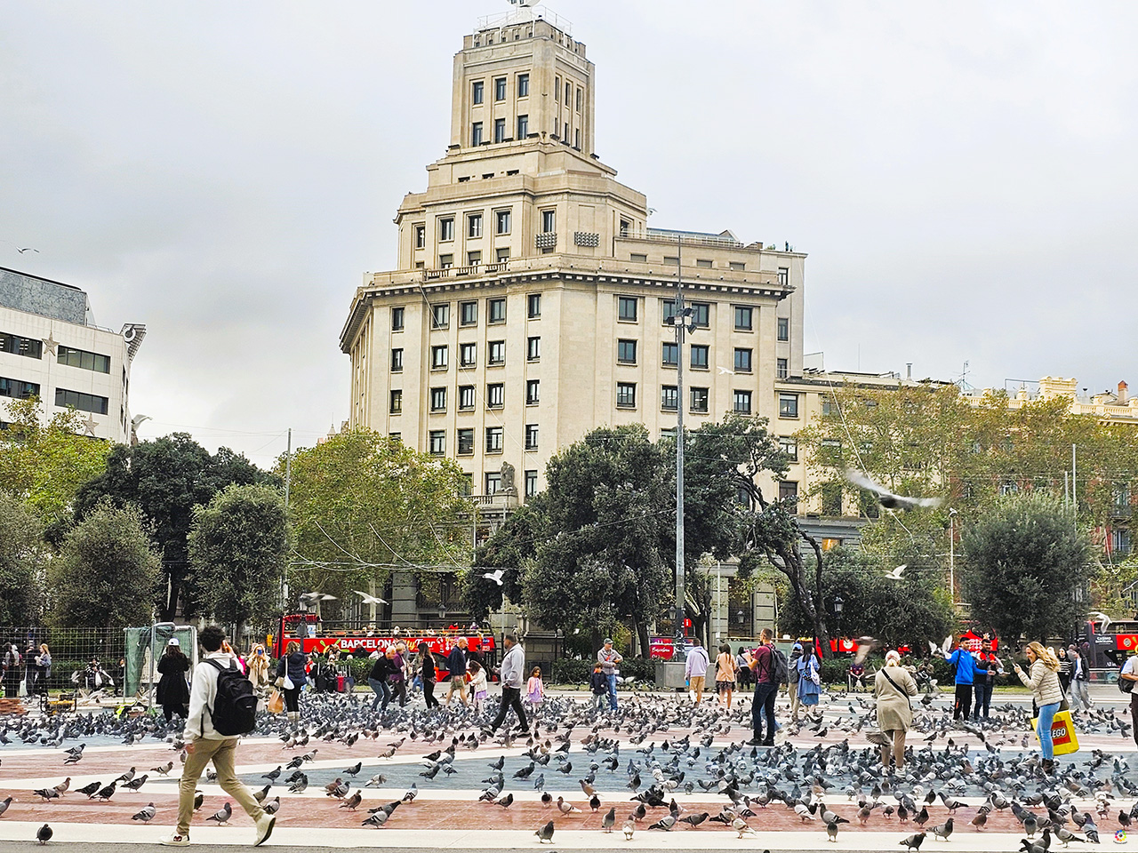 Uno de los principales puntos de encuentro de la ciudad y una de las plazas de España con mayor tamaño. Es la puerta de entrada a la Ciutat Vella. De aquí parten calles tan emblemáticas como Las Ramblas, el Paseo de Gracia o la Ronda de Sant Pere. Cuenta con un enorme espacio central rodeado de áreas ajardinadas y arboladas, con fuentes gemelas separadas por una terraza y varias esculturas de artistas catalanes. Aunque no te voy a mentir, lo que más me impresionó fueron los cientos, no se si miles de palomas que cubrían la plaza en el momento que la vimos, con un montón de turistas rodeados de palomas por todas partes haciéndose fotos y videos.