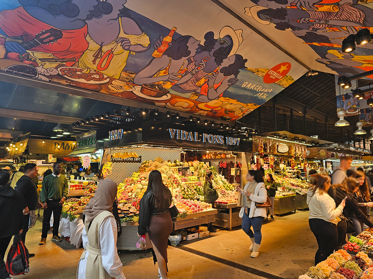En tu recorrido por La Rambla te encontrarás varios edificios y elementos destacados de la ciudad, comenzando por la Fuente de Canaletas, la más famosa, a la que acuden los seguidores del Futbol Culb Barcelona para celebrar sus victorias. Desde La Rambla podrás acceder al famoso Mercado de la Boquería, inmortalizado por escritores como Manuel Vázquez Montalbán, que le dedicó un libro, La Boquería: catedral de los sentidos. Es un espacio de casi 2.600 metros cuadrados con más de 300 tiendas. Aquí te encontrarás los mejores productos de la gastronomía en puestos de lo más colorido.