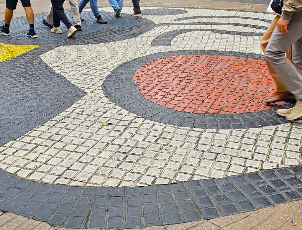 Una obra de Miró en Las Ramblas! : diariamente miles de personas caminan sobre un Miró en Las Ramblas , sin darse cuenta. Se trata de un mosaico circular en azulejos de colores, blanco, rojo, azul, amarillo y negro, muy cerca del Teatro Liceu y de la parada de metro Liceu.