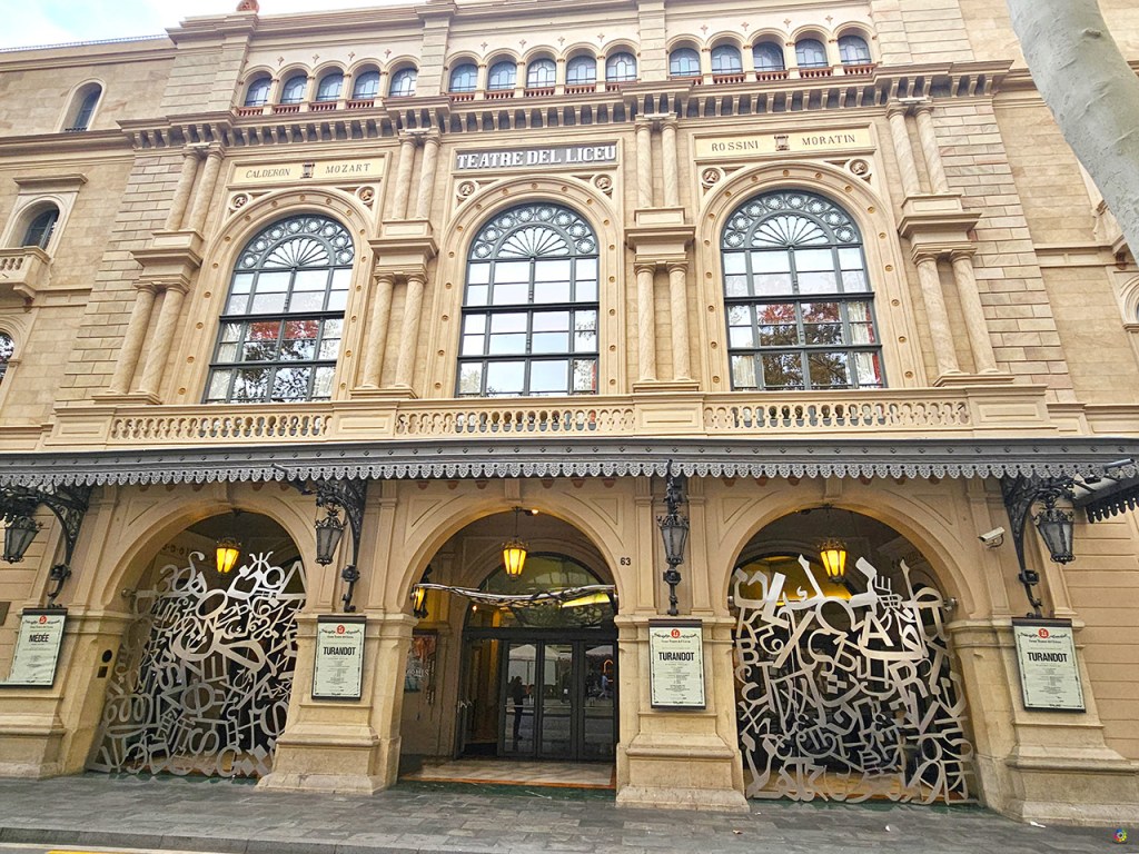 El Gran Teatre del Liceu: Construido sobre el Convento de los Trinitarios, está ubicado en el centro de Las Ramblas. Fue construido por Miquel Garriga i Roca, y su construcción duró 3 años, desde 1845 a 1847. La sala y el escenario se destruyeron durante un incendio en 1861 y fue reconstruido , suprimiendo el anfiteatro del segundo piso , por Josep Oriol Mestres. En 1875 se reformó la fachada original y en 1994 sufrió un devastador incendio que destruyó el edificio, solo quedó el vestíbulo y el arco de herradura. Fue reconstruido dejando lo que no se había quemado y recreando la sala como la construcción original.