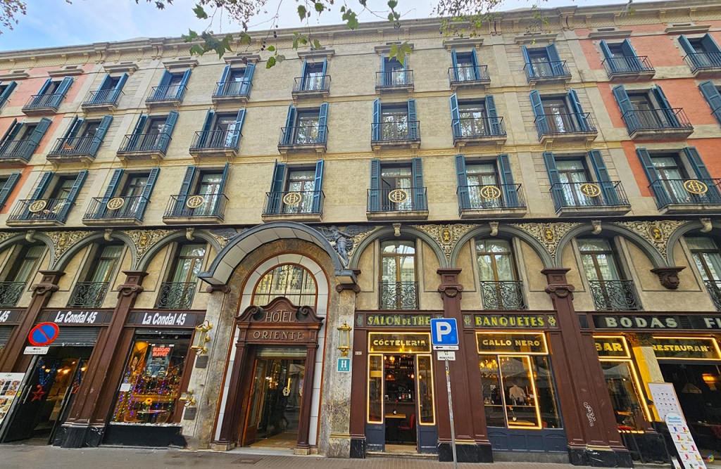 El Hotel Oriente, ubicado en el 45 de la Rambla dels Caputxins, es, sin duda, el hotel con más historia de Barcelona. Considerado Bien Cultural de Interés Local, en sus más de 370 años de historia, está ahí desde 1652, ha sido testigo de los grandes acontecimientos históricos de la ciudad y ha hospedado a grandes personalidades. Fue el primer hotel en incorporar la iluminación con luz de gas , cuando se inauguró en 1842 como La Gran Fonda de Oriente. Hasta 1835 había sido colegio franciscano de San Buenaventura. Hospedó a Hans Christian Andersen en 1862, que fue testigo desde aquí de la inundación de Las Ramblas. Cambió su nombre a Hotel Oriente en 1931 y hospedó a celebridades como María Callas, Manolete, Federico García Lorca, Miguel de Molina, Rafael de León y hasta Errol Flynn en 1955. En la actualidad pertenece a la cadena hotelera Atiram.
