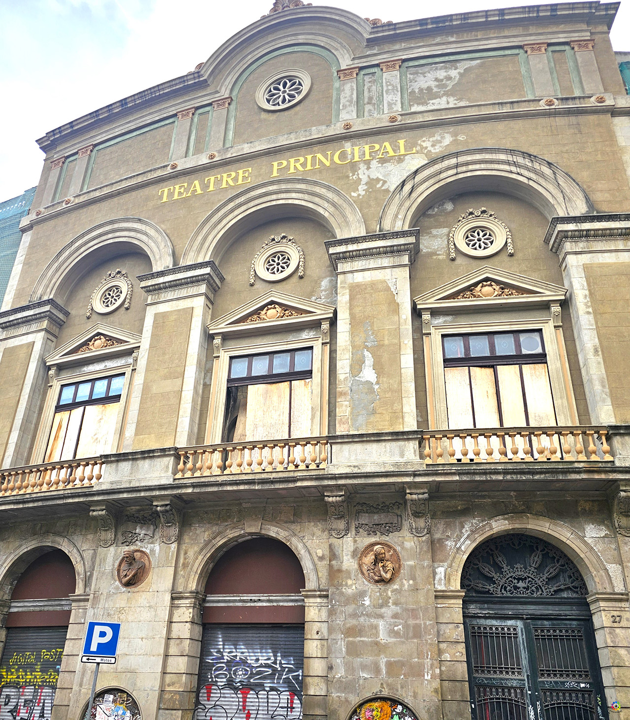 El Teatro Principal, es el más antiguo de la ciudad y uno de los más antiguos de toda España, inaugurado en en 1607 , en el solar de lo que fue el antiguo Teatro de la Santa Cruz, construido en 1579, gracias a un privilegio concedido por Felipe II al Hospital de la Santa Cruz, para poder representar comedias en la ciudad. Realizado en madera como Corral de Comedias, en 1728, la falta de aforo propició su derribo y nueva construcción en piedra. Destruido por un incendio en 1787, se reconstruyó y volvió a inaugurar en 1788. En 1840 se convirtió en el Teatro Principal y sufrió una gran reforma en 1847 que distribuyó todos los locales interiores , albergó la emblemática Cúpula de Venus y convirtió el hall en el Café de los Guardias, posteriormente renombrado como Café Delicias, frecuentado por soldados de la Guardia Real, artistas y empresarios. Lugar de tertulias de personajes ilustres como Víctor Balaguer, Apel-les Mestres, Ángel Guimerá, Frederic Soler Pitarra y Pérez Galdós. Se incendió, de nuevo, en 1915 y en 1933, fue Cabaret, Club de Billar, frontón Jai Alai, sala de cine Latino y hasta Sala X hasta que se volvió a convertir en el Teatro Principal. Actualmente se encuentra en proceso de rehabilitación y abrirá sus puertas, previsiblemente, en 2024. Si te gusta el street art, muy cerca podrás ver un bonito mural.
