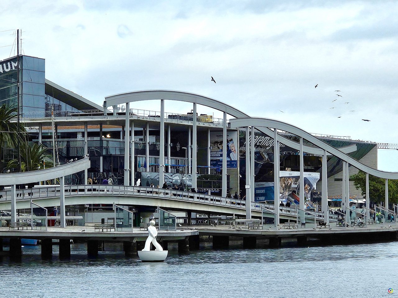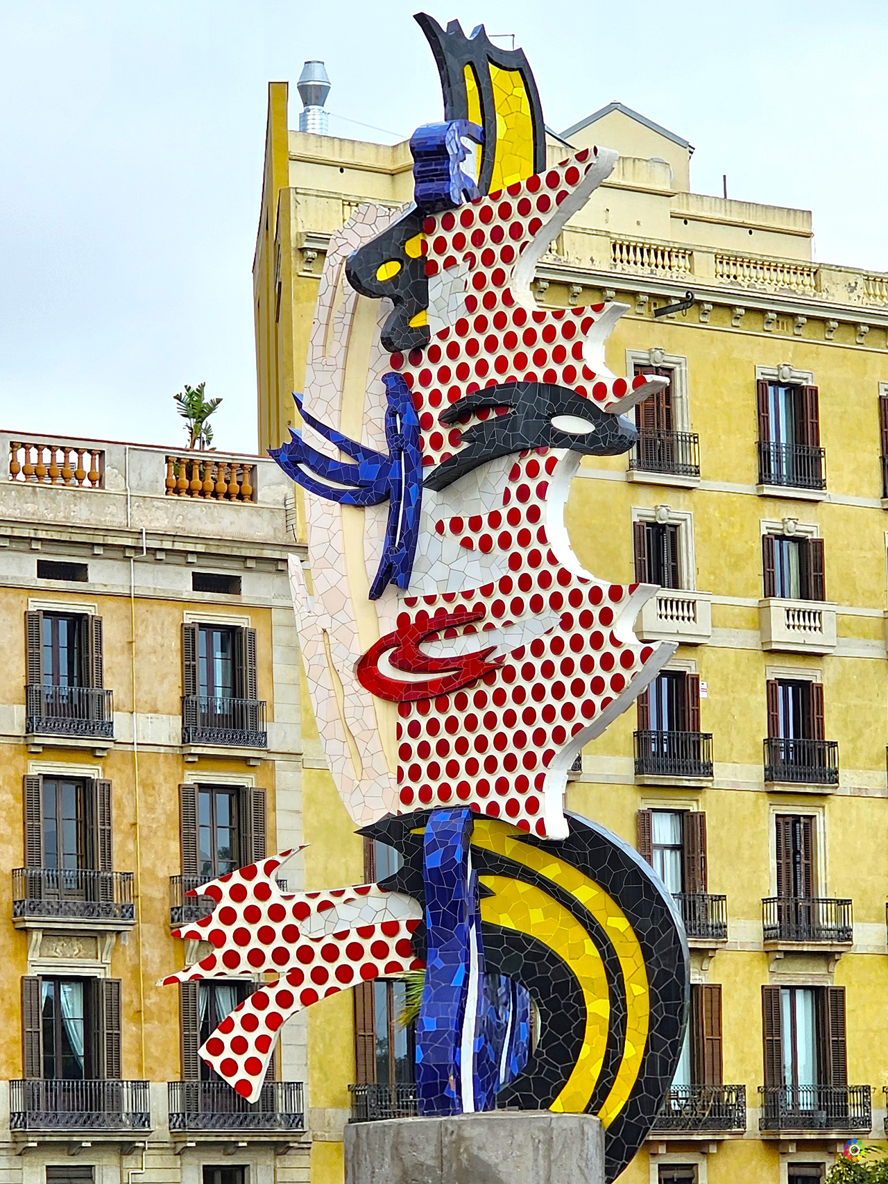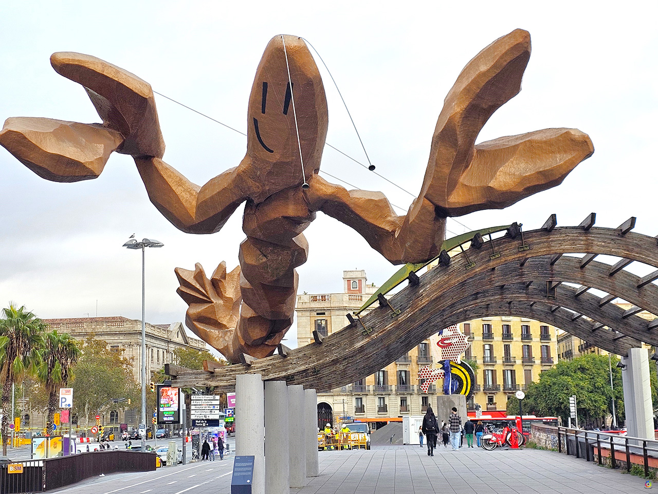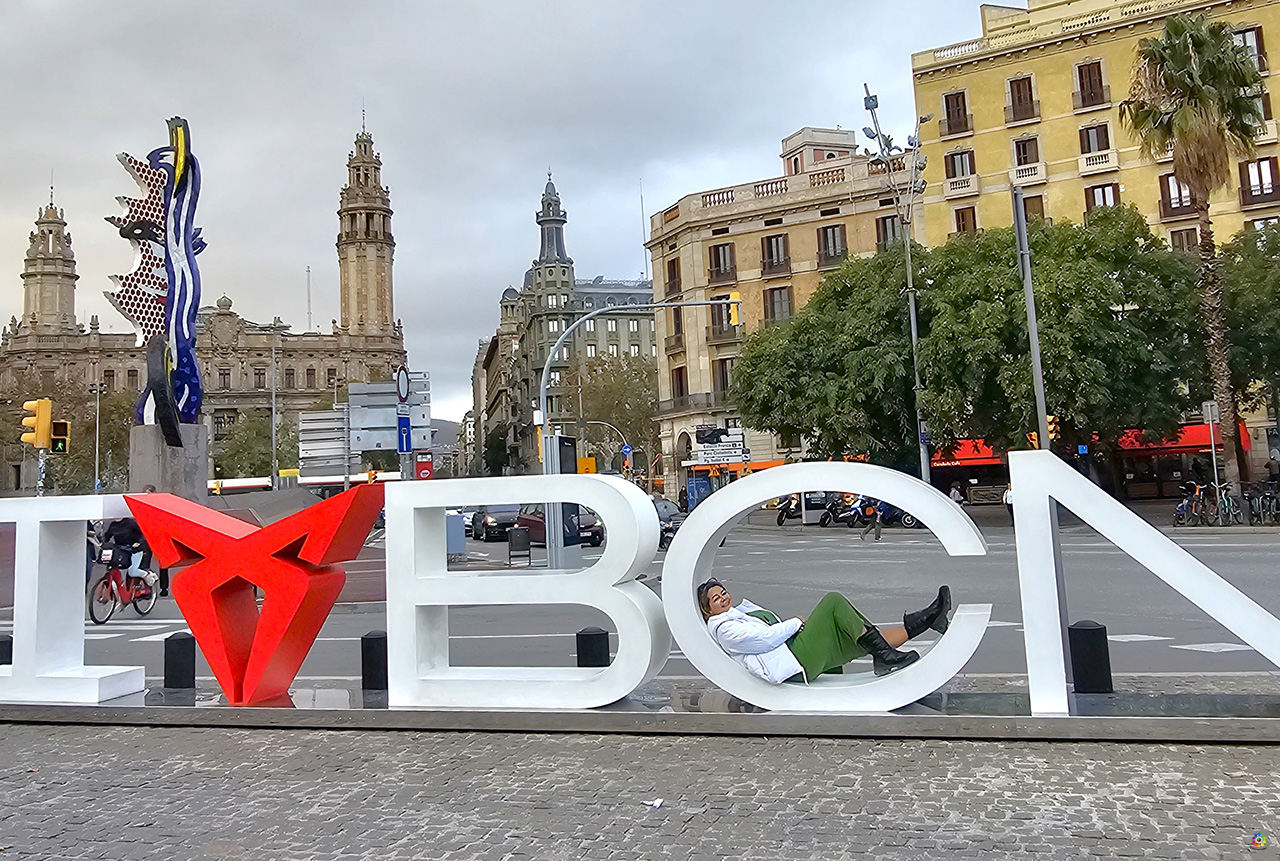 Port Vell ( Puerto Viejo) es la parte más antigua del Puerto de Barcelona. Actualmente dedicado a embarcaciones deportivas, el mejor punto de acceso es desde la Plaza del Portal de Pau. En el Muelle de Madera ( Moll de la Fusta) se encuentra una original y enorme escultura, la Cara de Barcelona, obra del artista norteamericano Roy Lichtenstein, y el Pailebote Santa Eulália, un velero histórico de tres palos que se puede visitar. Muy cerca de la Cara de Barcelona se encuentra la Gamba de Javier Mariscal, una escultura de 10 metros de longitud inaugurada en 1989 como parte de la decoración para uno de los restaurantes del Moll de la Fusta, Gambrinus. En el momento que estuvimos nosotros, también habían colocado unas letras de » I Love Barcelona», aunque es una campaña de la marca de automóviles Cupra que , al parecer, han puesto en varias ubicaciones.