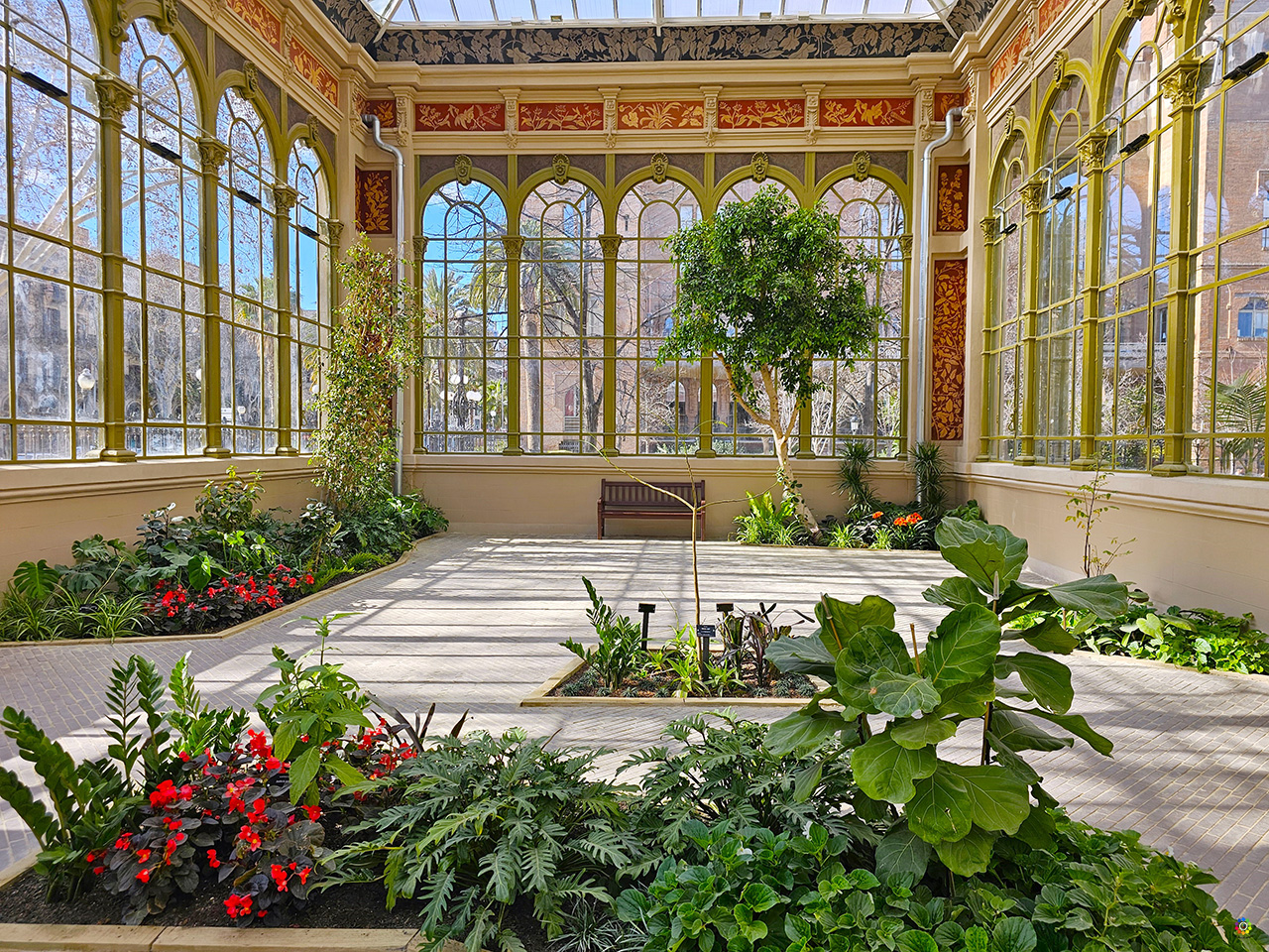 de carácter modernista de gran valor. Su estructura es de metal con cerramientos íntegramente de cristal para dejar pasar la luz. Está formado por tres naves: la principal queda abierta por dos de sus lados, mientras que las laterales tienen las cuatro paredes de hierro y cristal. Sus elementos decorativos son sobrios, realizados en hierro fundido, y reproducen elementos helenísticos como palmas y otras formas