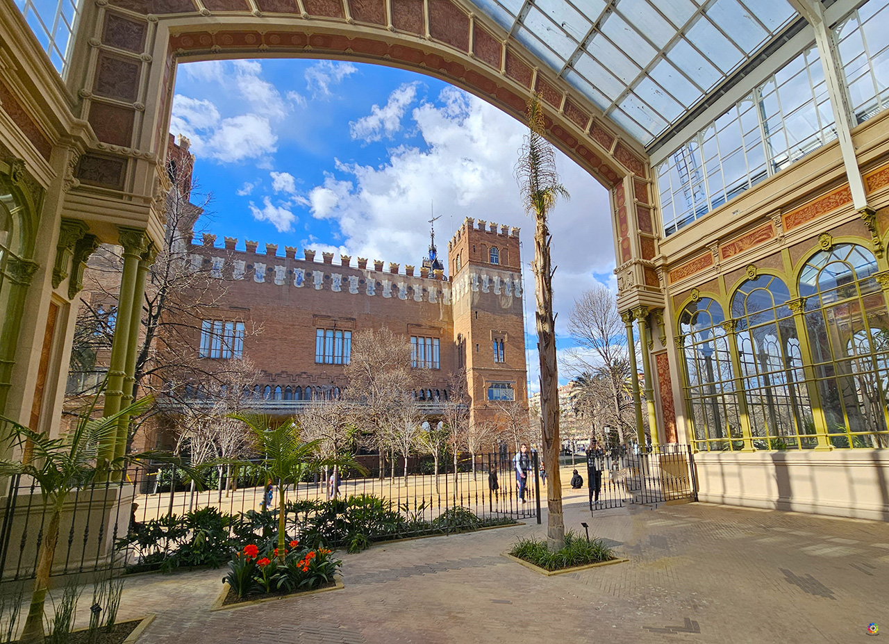 lobuladas. Tanto en el interior como en el exterior se encuentra el escudo de la ciudad de Barcelona en el tímpano de la nave central. La nave más próxima al parque, denominada Nave Magnolias, acoge una