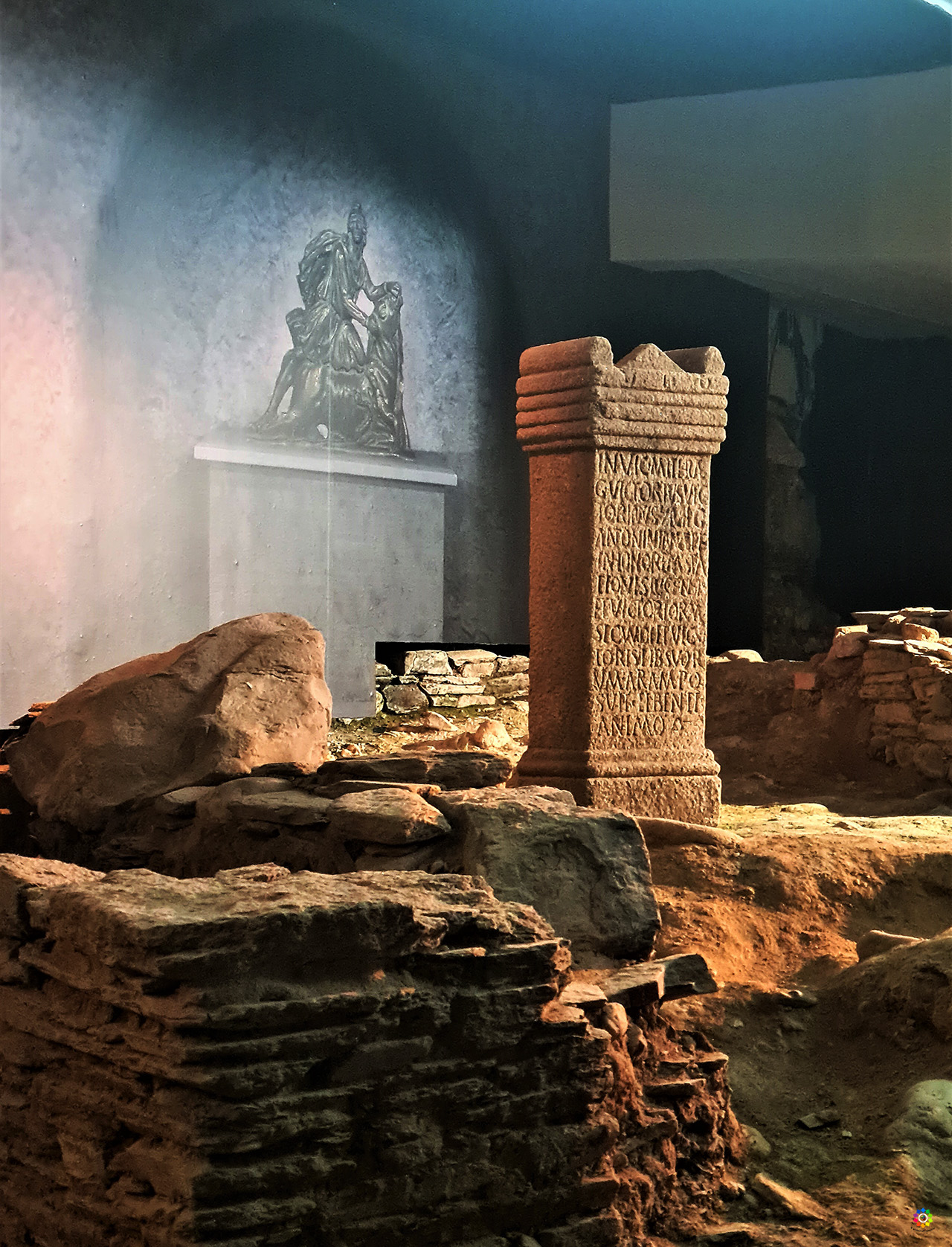 A 7m , bajo la ciudad de Lugo, nos encontramos un yacimiento arqueológico único, divido en tres partes: El mitreo ( templo de culto) único en la península . La Domus do Mitreo fue una lujosa mansión romana y La Muralla.