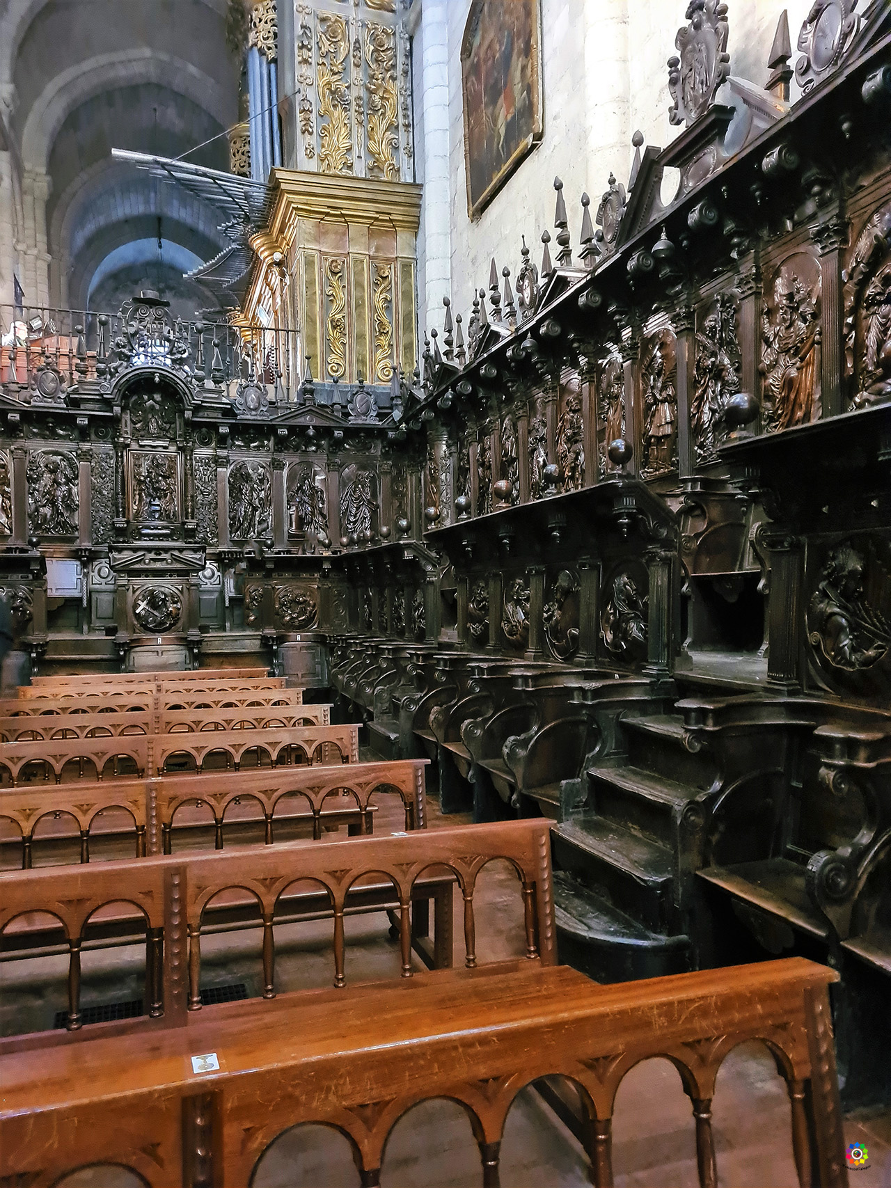 En medio de la nave de la catedral se sitúa un Coro de 66 asientos ( Francisco Moure 1624) .